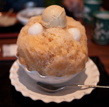 And for the ultimate cooling snack, try a big bowl of kakigōri (shaved ice), perhaps with a traditional sauce such as kuromitsu kinako (toasted soy-bean powder and brown sugar syrup). You can buy hand-cranked shaved ice makers, which are a great way for your kids to make their own snacks and burn off a few calories — or just go out and enjoy some kakigōri at a kanmidokoro (traditional dessert shop).