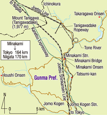Getting there: Take one of the hourly JR Joetsu Shinkansen trains from Tokyo Station to reach Jomo Kogen in about 75 minutes. There are car-rental offices in and next to the station. Or drive up the Kanetsu Highway to Exit 15 at Minakami, less than two hours from Tokyo. Further information: The website of the Minakami Sightseeing Association is www.enjoy-minakami.jp/eng/index.html. Feeling sporty: Canyons ([0278] 72-2811; www.canyons.jp/index_E.html) is an excellent Kiwi-operated outdoor adventure company with accommodations and year-round guided tours in English. It also offers rafting, canyoning, hiking, caving, backcountry skiing, snowshoeing and mini-summer camps for kids.
