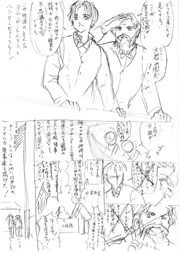 Matsumoto had agreed to let us take some unpublished drawings with us for our article, and we were especially interested in ones for "Bakumatsu Rashamen-musume Jyoushi" ("The Far Eastern Romances").