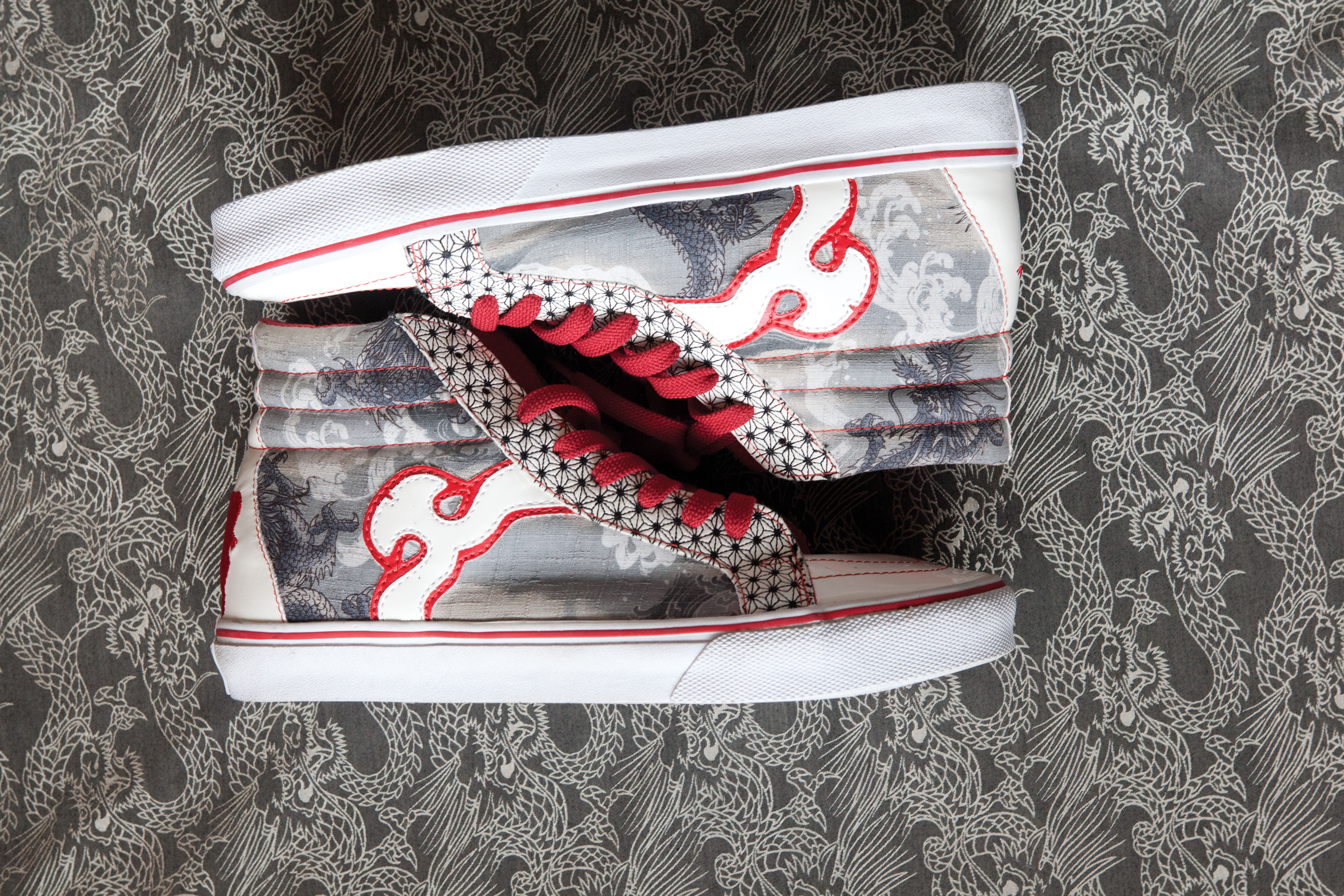 According to Okazaki, there is a new wave of designers incorporating traditional Japanese culture into sneakers. One such brand is Ryuz, which uses ancient motifs. Okazaki interviewed Tomoyuki Nishibe, the representative director of Ryuz.