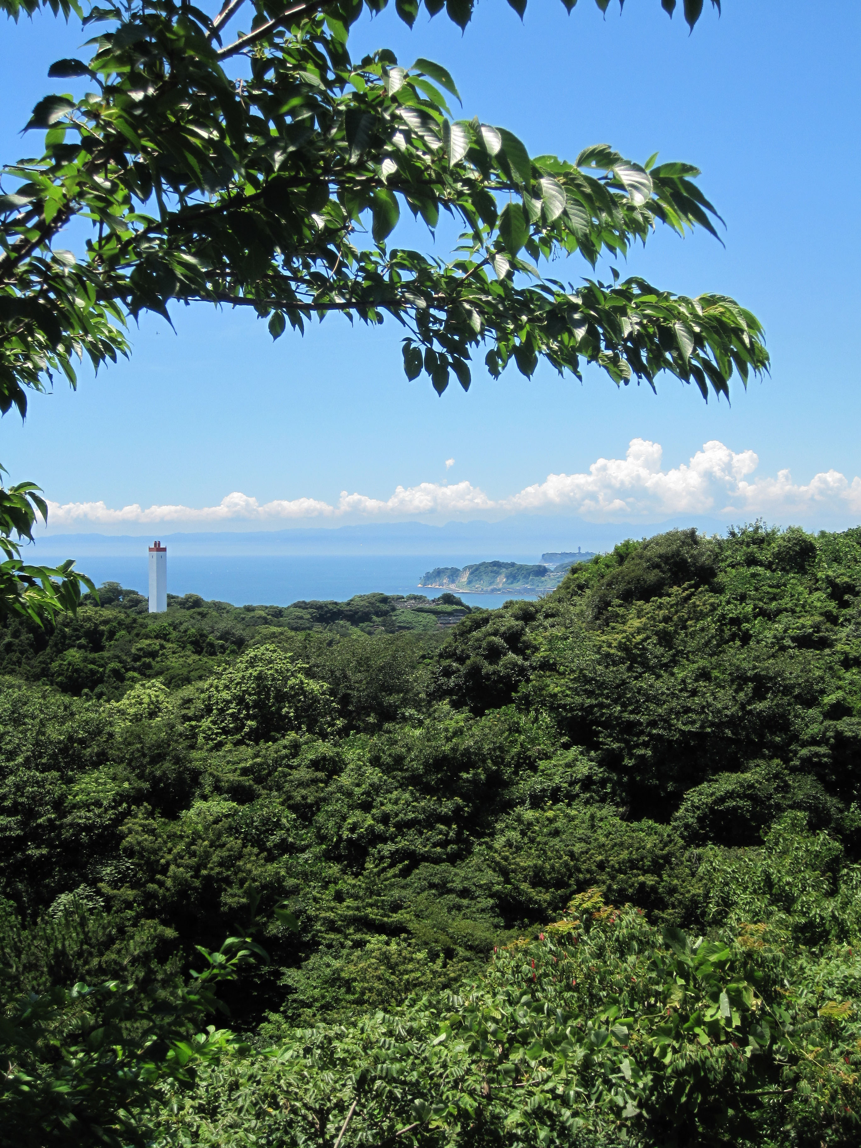 The view itself is grand: the bay dances in the distance below the green of the mountains, with the small town of Inamuragasaki framing itself in front of Enoshima, and Mount Fuji aloft behind them both. You are standing on top of another famous, but mostly forgotten, historical site.