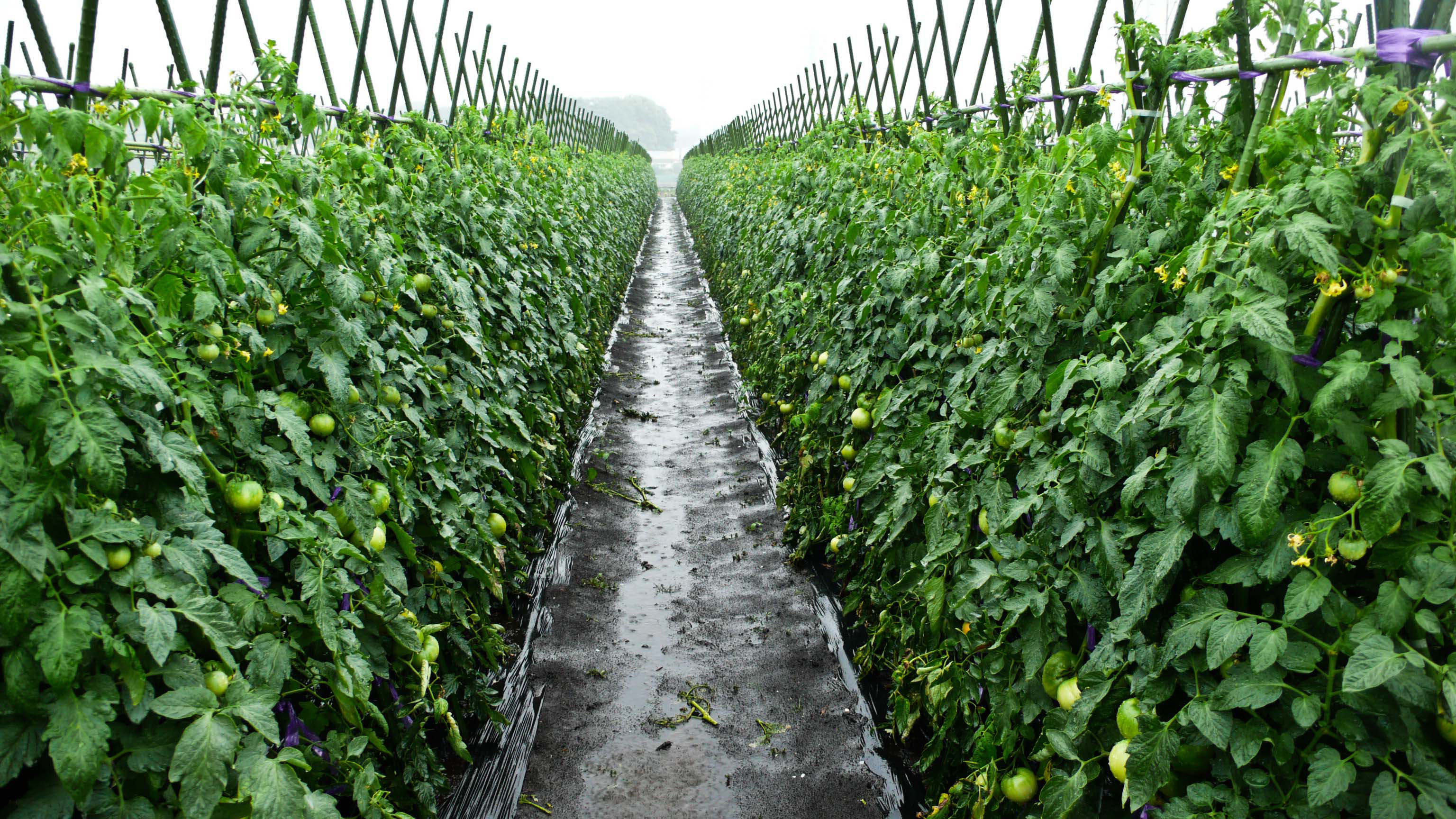 The growing season here is year-round — cabbage or daikon in winter, and a more diverse range of produce in spring, summer and autumn. They grow broccoli, carrots, onions, leeks, potatoes, Chinese cabbage, cauliflower, (squash), cucumbers, zucchini, tomatoes, kuromame (black soy beans), red shiso (perilla), daikon and rice. The rice is mostly for personal consumption, though. This isn't a commercial rice-growing area.