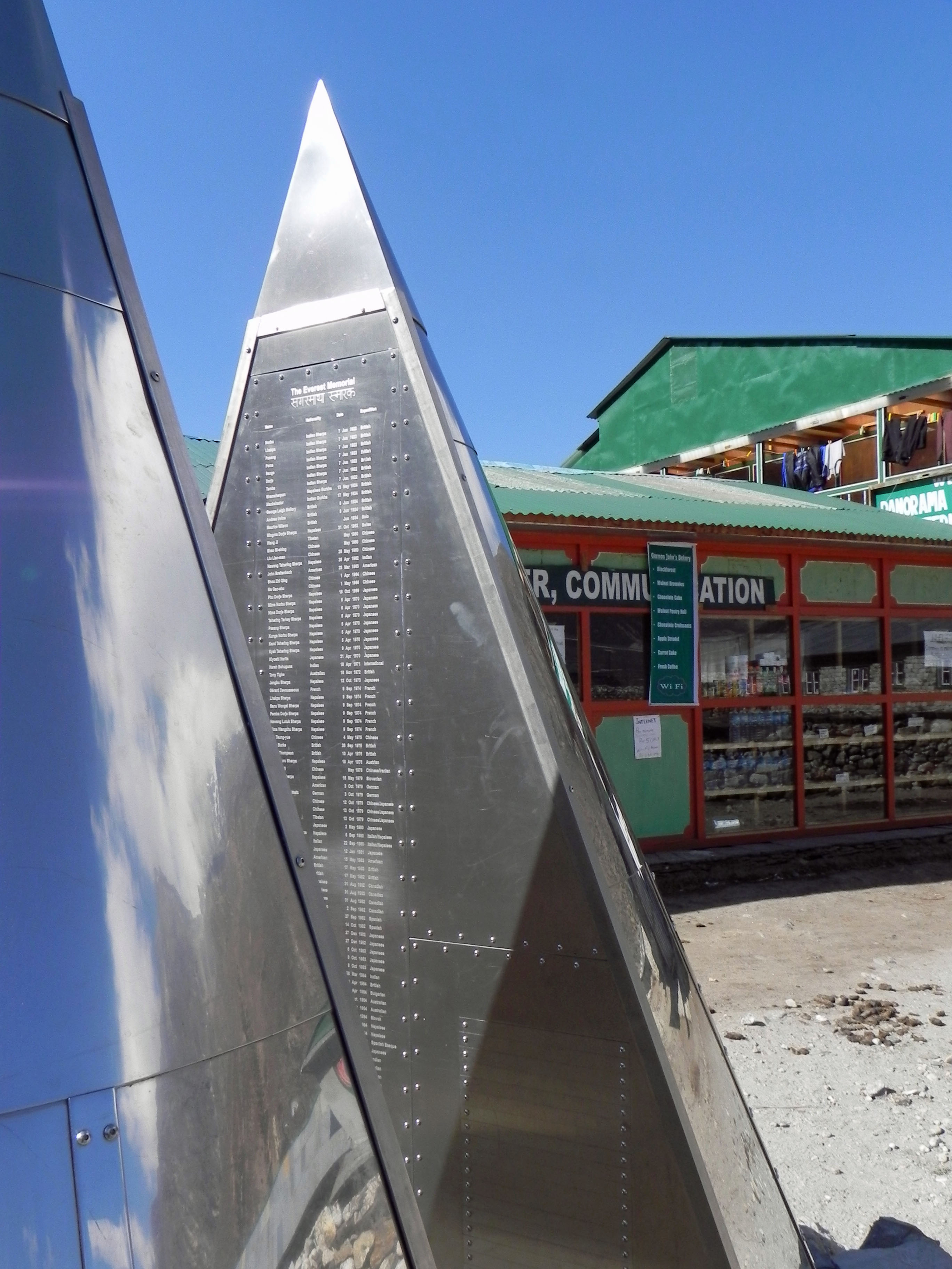 Some visitors fly in to its private helicopter pad, risking altitude sickness by doing so, as it sits at 3,880 meters and claims — another record holder — to be the highest hotel in the world. It offers trekkers their first good glimpse of Everest, for the mountain is surprisingly coy and hides for most of the route (indeed, it is invisible from Base Camp). We sit on the terrace and drink in both fine hot chocolate and the spectacle.
