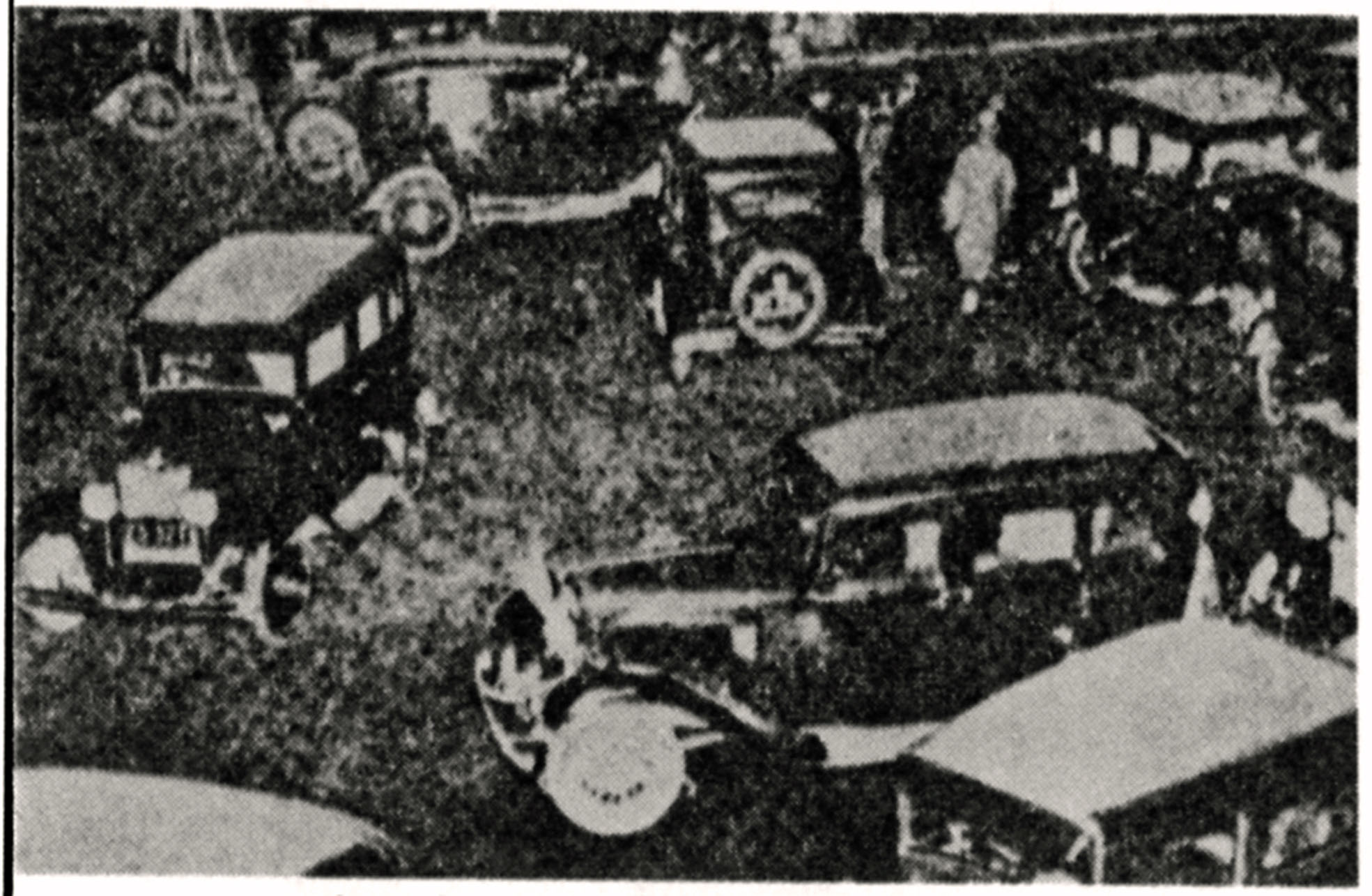 Meanwhile, on July 10, 1912, the Tokyo Taxicab Company began operations out of a garage at Sukiyabashi, by Yurakucho Station, with a fleet of six Model T Fords used to pick up passengers at Shimbashi and Ueno stations. The cars were fitted with German-built meters that calculated fares according to mileage (not kilometers) — 60 sen for the first half-mile, 10 sen for each additional one-third mile and 10 sen for every five minutes of waiting time. (A sen was 1/100 of a yen.) The posted speed limit for motor vehicles was 16 kph.