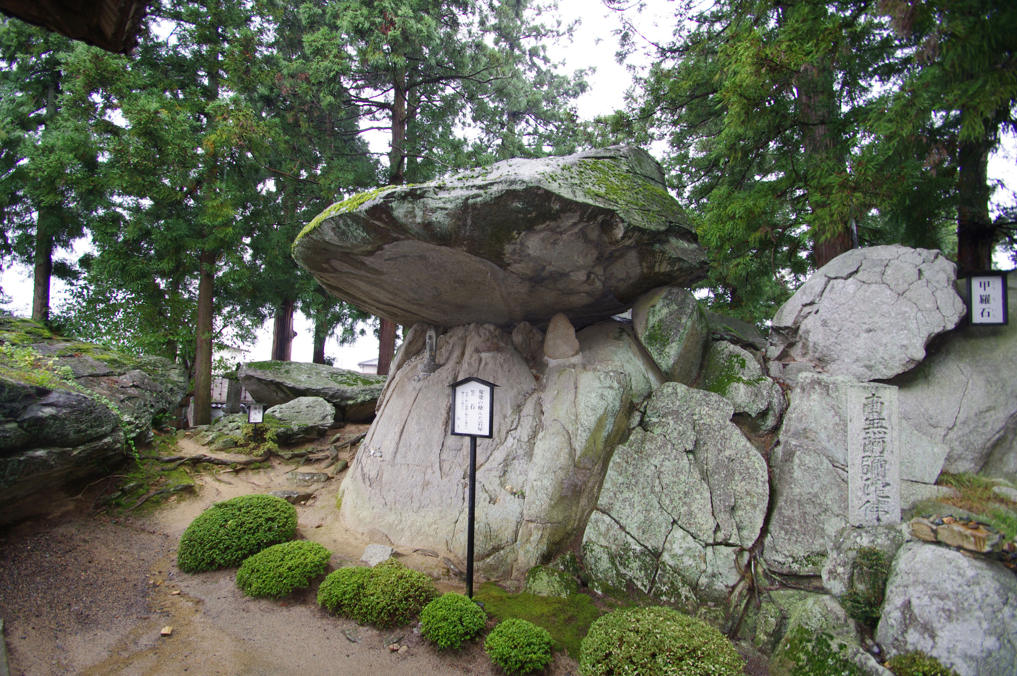 The main hall, according to information on the back of my ¥400 entry ticket, was erected in 1788. Just past the entrance there is a memorial, embellished with floral offerings and incense, where visitors can offer prayers to Onibaba's victims. Behind this are several impressively large boulders, among which is the so-called Iwaya overhang beneath which, as the story tells it, Onibaba erected her hut.
