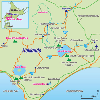 And here, in southwest Hokkaido's enormous Shikotsu-Toya NP, the landforms are as much a monument to violent geological forces as to beautiful scenery.
