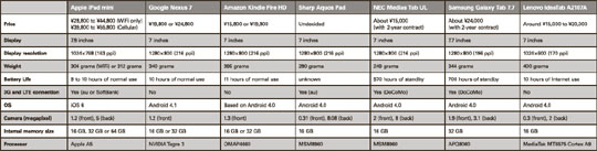 By comparison, in September, Google launched the 7-inch Nexus 7 in Japan for just ¥19,800 (16 GB version), a surprisingly low-price for a tablet device. It has apparently been popular with Japanese consumers, as many stores have sold out.
