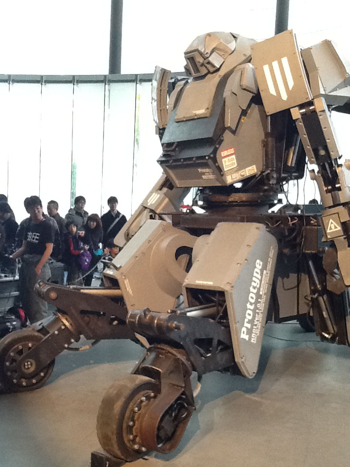 The fair's main attraction was undoubtedly Kuratas — a 4-meter tall, 4-legged gigantic robot whose movements can be controlled by a person from a cockpit seat, just like the fictional robots in anime such as "Gundam."