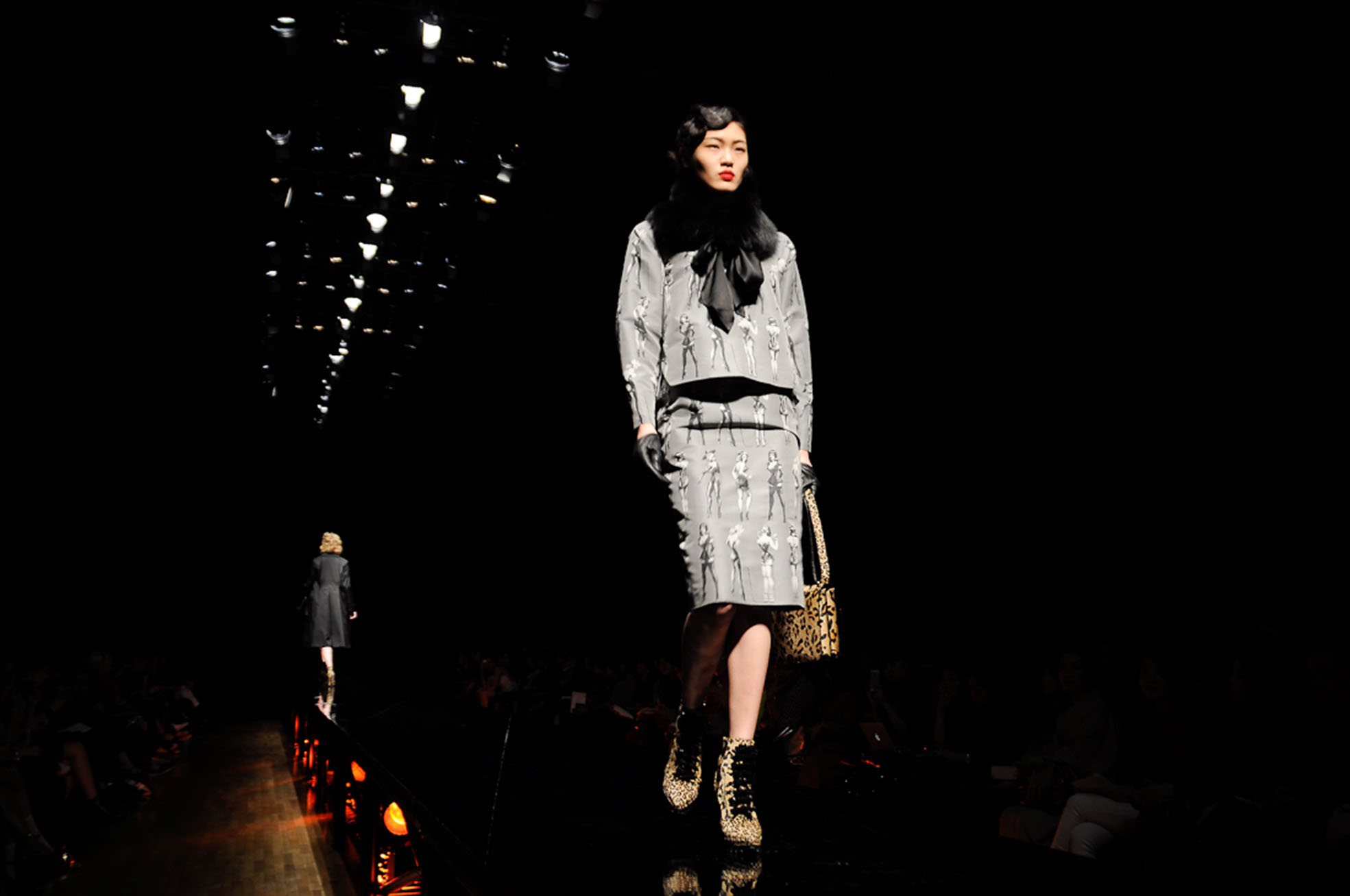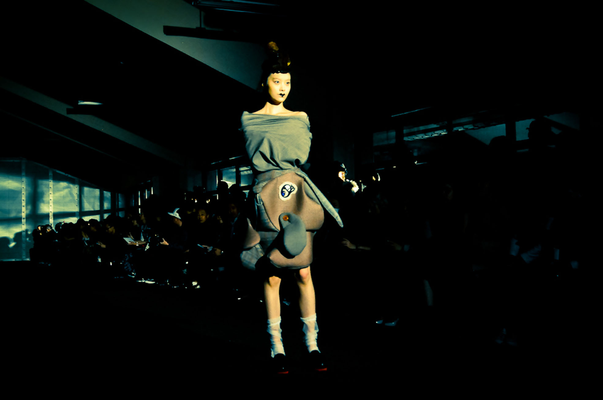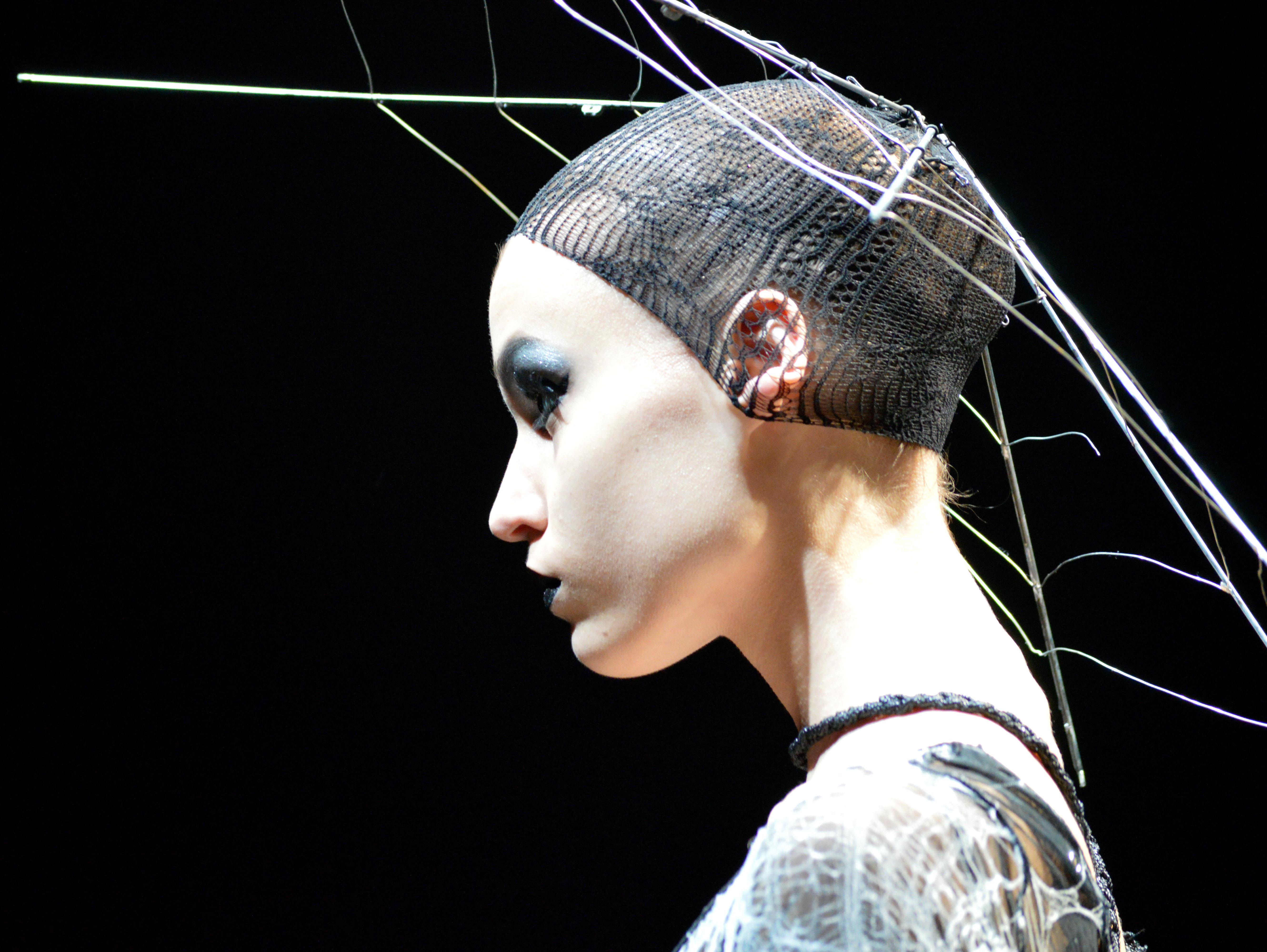Gothic-lifestyle brand Alice Auaa also had one of the most impressive shows of the week, bringing some much-needed fantasy to the runway. Metallic steampunk crinolines, a giant wearable helium spider body and lots of black lace were among the characters in a story of a Greek goddess who transforms into an arachnid. The clothes are all handmade couture, by appointment only, that are created at Alice Auaa's new salon on Tokyo's swanky Omotesando boulevard.