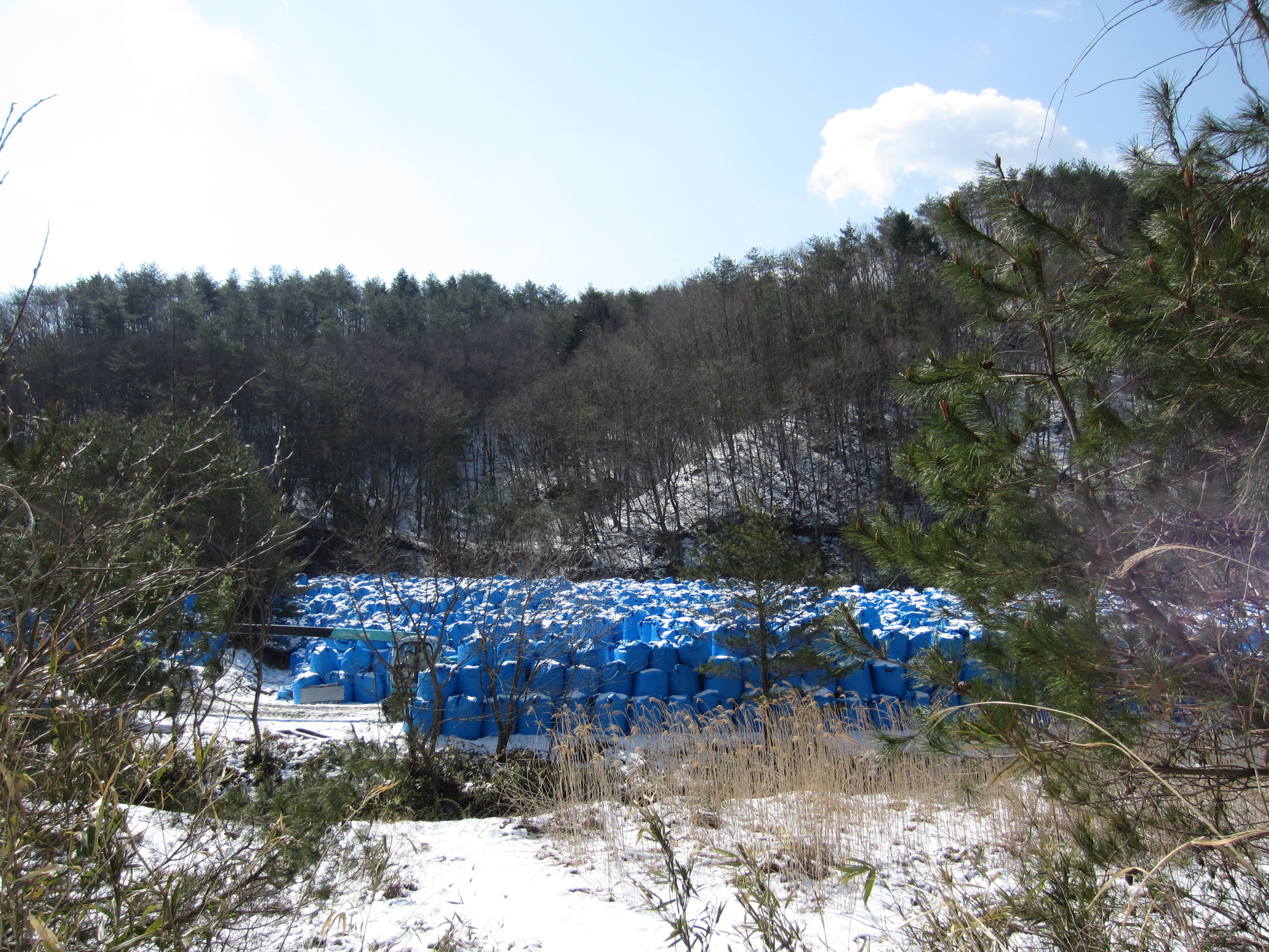 For instance, though dozens of cleanup workers were filling plastic bags with contaminated mud and leaves from hillsides and roads in deserted areas of Futaba close to Tepco's plant, it was deeply disturbing to see huge mounds of those bags filled with radioactive waste dotting the landscape with nowhere to go.