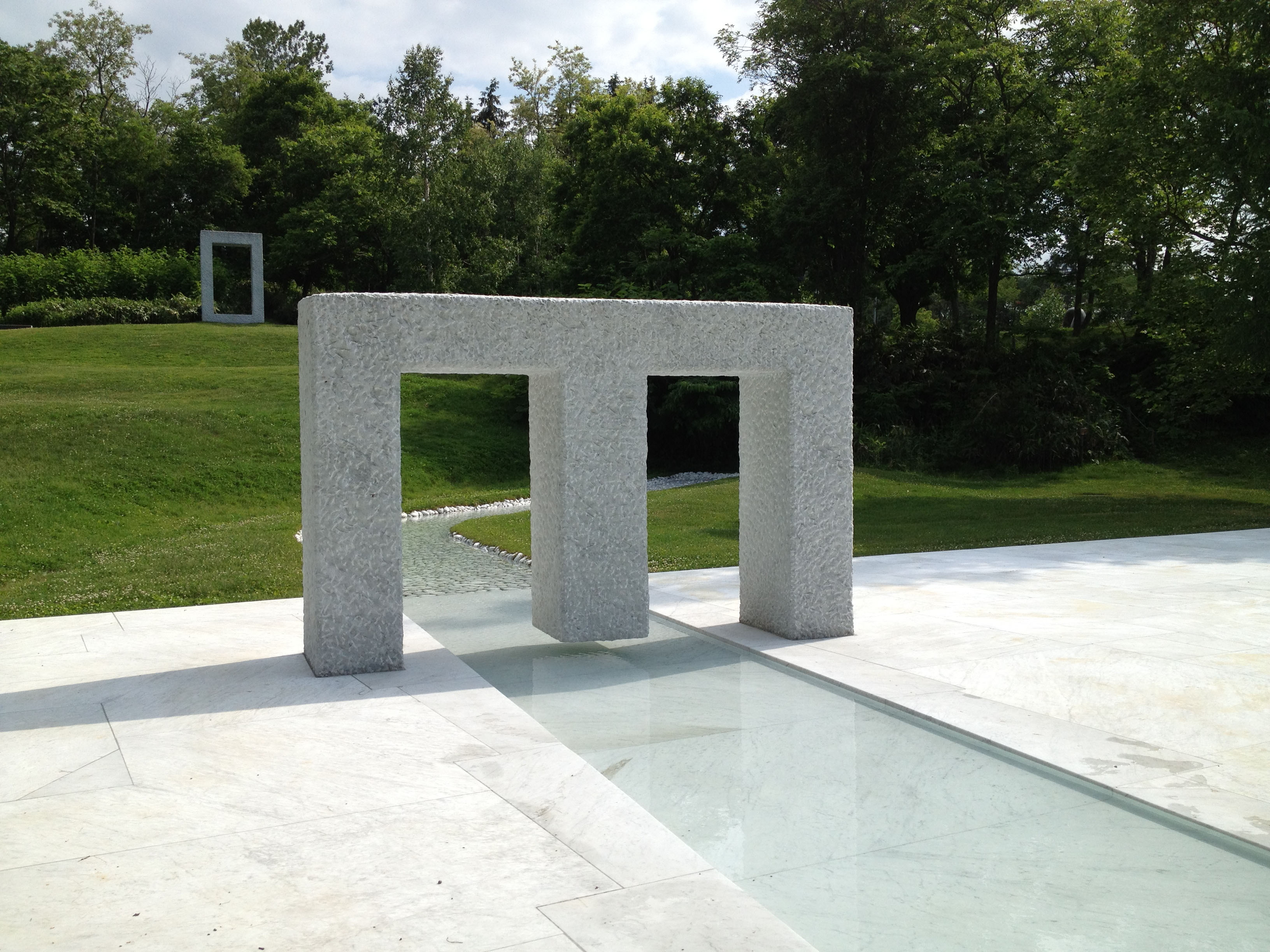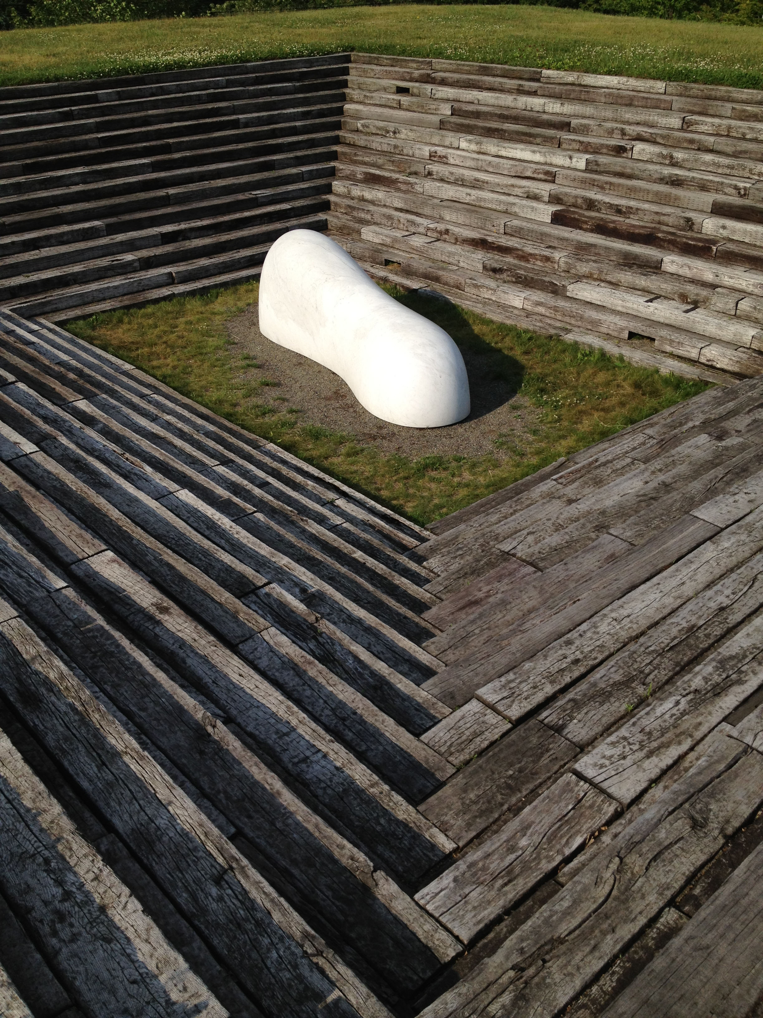 Park your car, take out your picnic basket, enter the park and peel back the next layer of the cipolla, for this is a site with surprises. Climb the little grassy knoll to your right and you will find hidden and nestling in its top a sunken outdoor auditorium with at its center a great marble shape, smoothly surfaced and sensually rounded as if begging to be stroked, or even caressed.