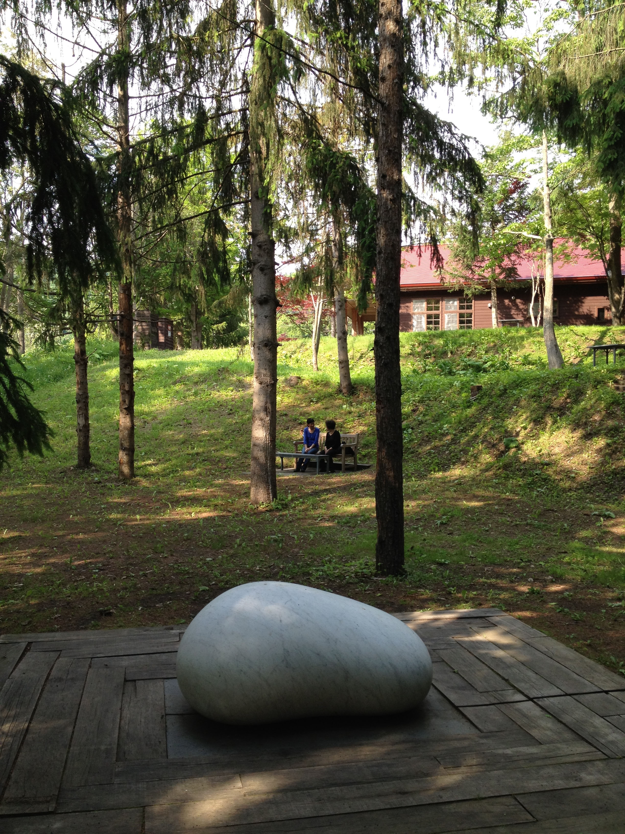 This is just the first of some 40 astonishing artwork pieces scattered intriguingly around these 17-acre grounds just about plumb in the center of Hokkaido. As you will in due course find with each of the other pieces that slowly reveal themselves as you wander the park and its woodland trails, this one is not labeled. No matter, because it namelessly invites silent contemplation.