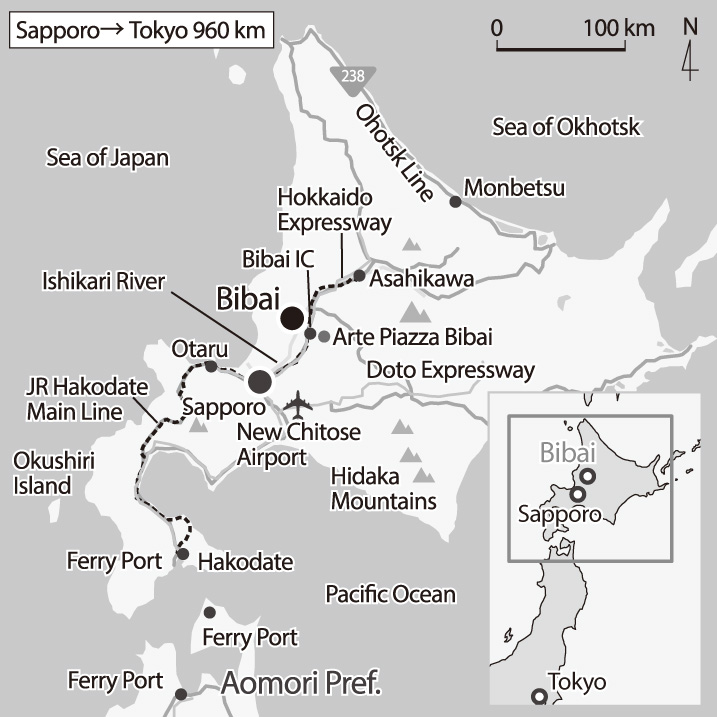 One "must-take" exit proves, surprisingly, to be that for an old coal-mining town called Bibai. Approximately an hour from Sapporo following signs for Asahikawa, this exit debouches travelers from their headlong highway rush onto quiet country backroads in the blink of an eye; it is a jolting contrast, but much more is to come.