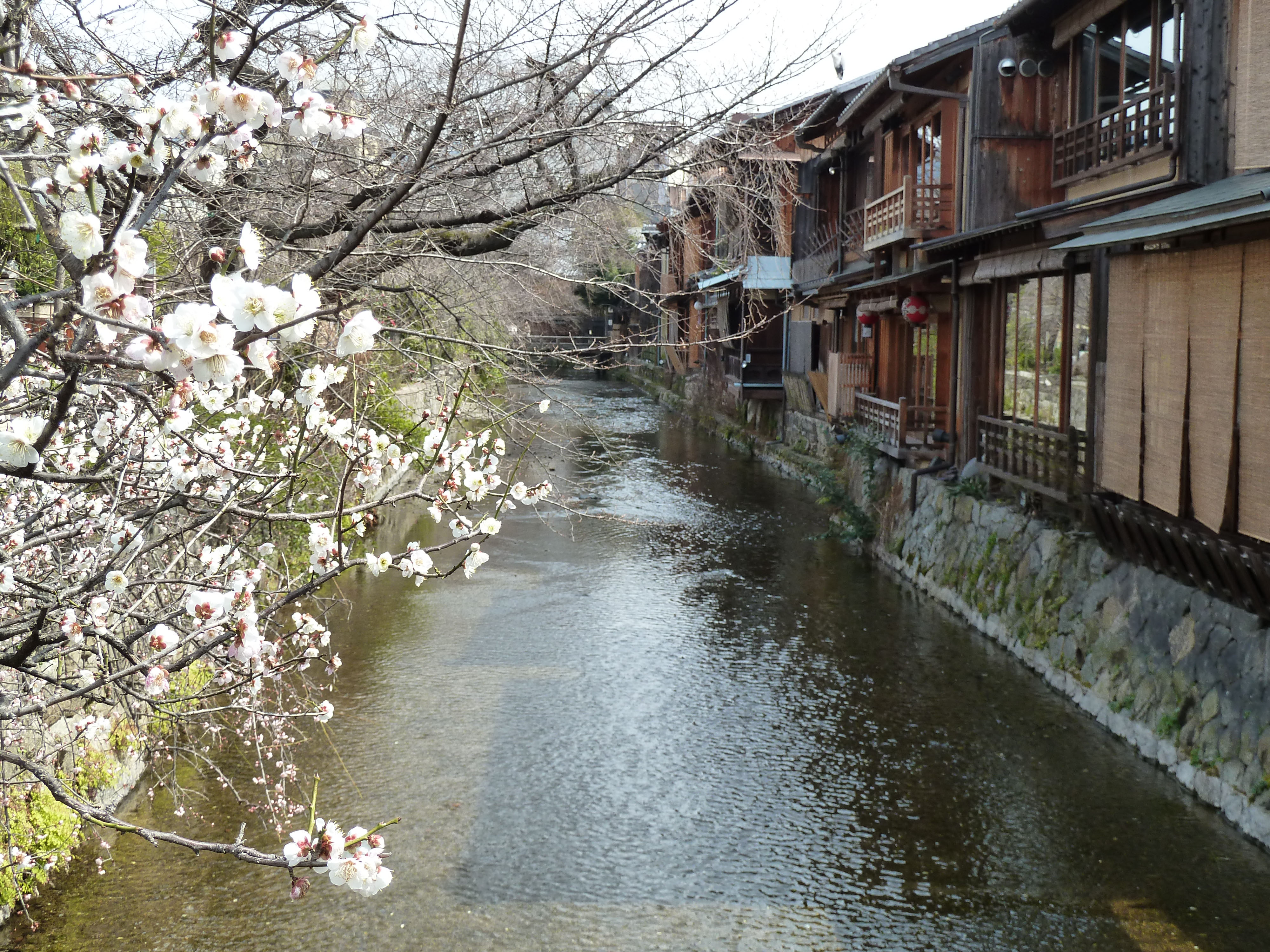 Around a corner I come to the Kamo River, swirling along, low and brown. Runners jog along the towpath, houses crush together higgledy-piggledy on the opposite bank and a heron perches on a rock in the middle.