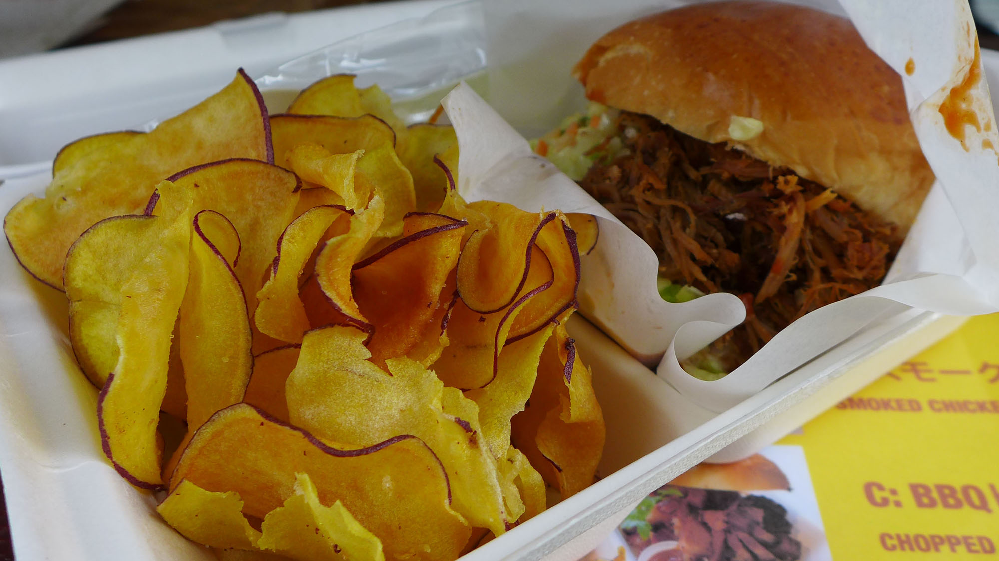 And she hopes it will have a moment in Japan, too: Since last June, Shannon, who also owns Kimono Wine and Grill, has been running Bulldog out of an adorable vintage truck that she and her husband custom-designed. Most days, you can find the truck parked in front of National Azabu supermarket in Hiroo. The menu includes Carolina pulled pork (Shannon's favorite, served with a sweet-and-sour vinegar sauce), Texas-style beef brisket and smoked chicken, all served on fresh-baked bread with a side of handmade sweet-potato chips.