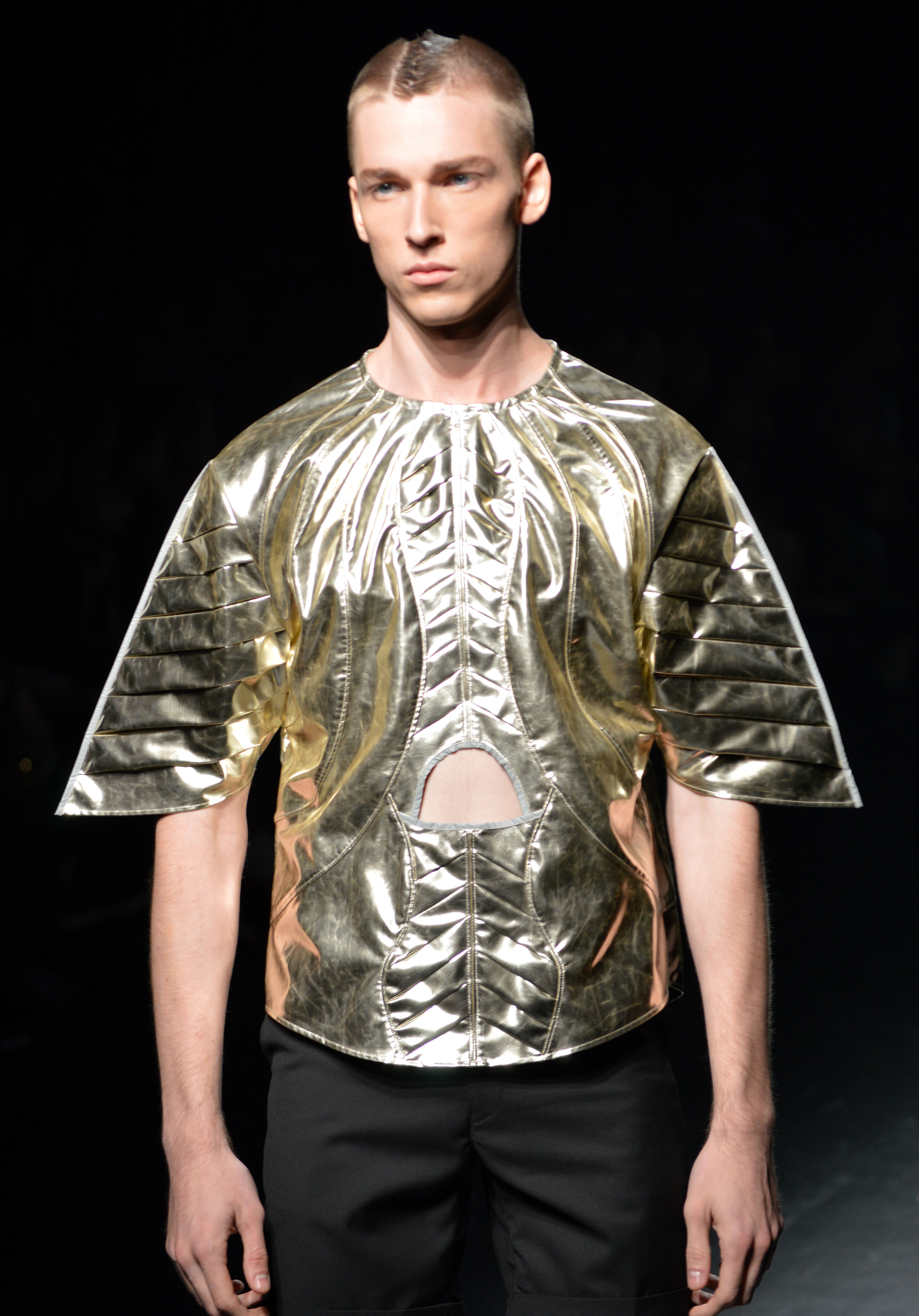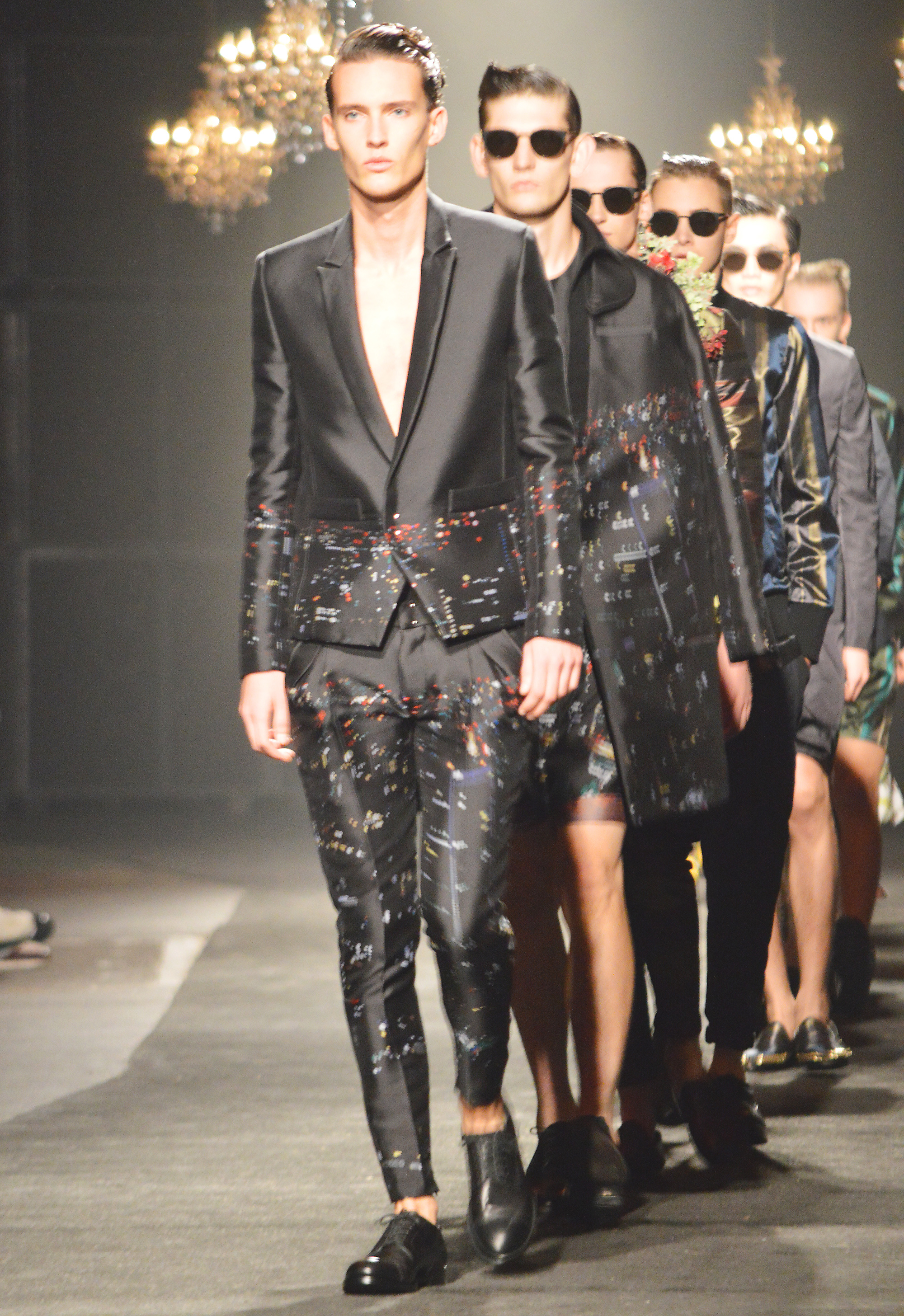 Revving up the aggression stakes was Christian Dada, who was a major talking point of the week thanks to the appearance of rock outfit Kiss at his show. Before the memorable closing, designer Masanori Morikawa delivered a razor sharp slim fit that might necessitate a strict diet, packed with references to Japan's bōsōzoku biker gangs. Dada's tattooed and rakish gang were the clear export of the week and, although his designs carried obvious Japanese references to the bōsōzoku sub-culture, the silhouette was well within the comfort zone of foreign buyers.