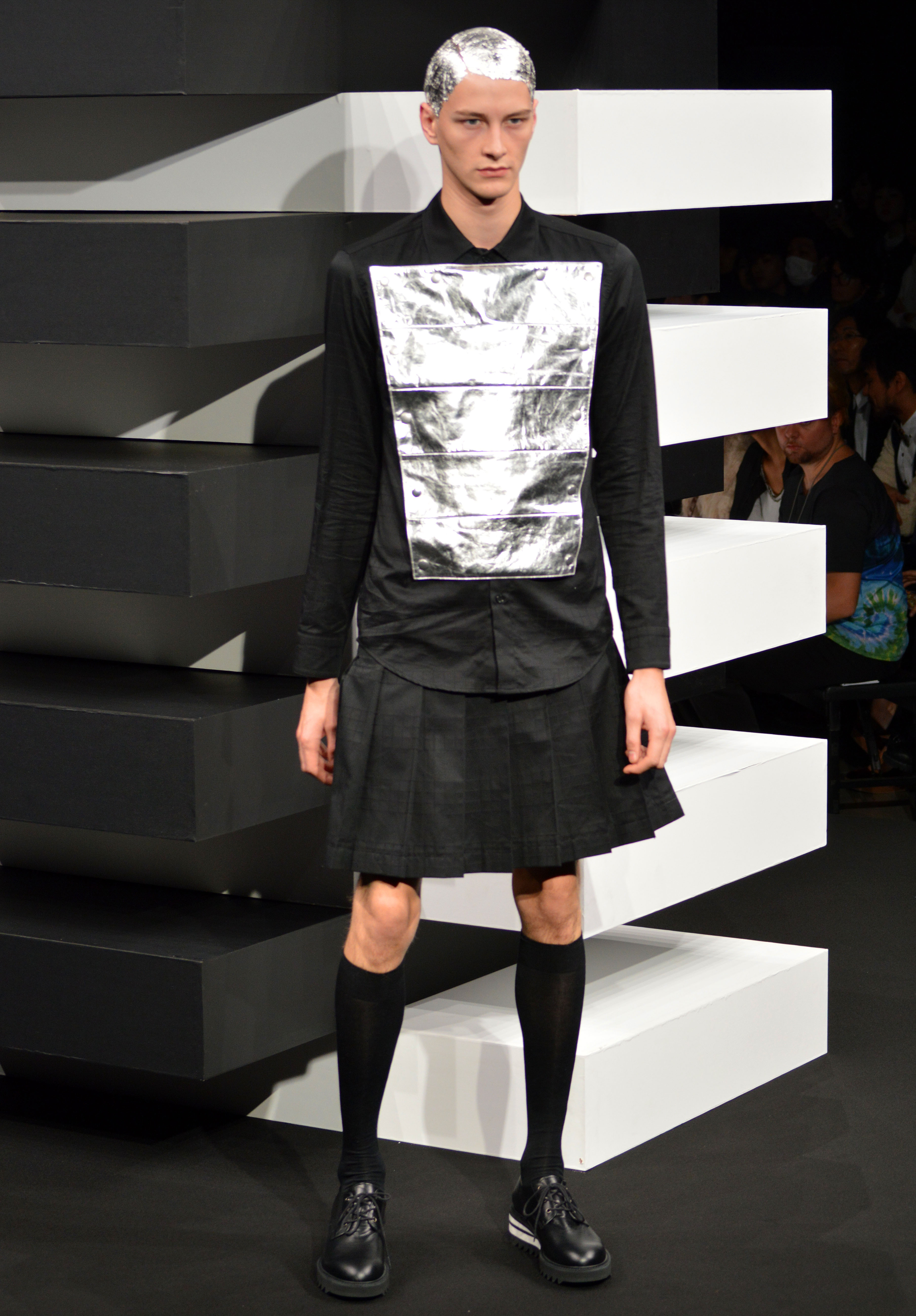 If those approaches are a touch strong for those outside the industry bubble, perhaps the best examples of where Tokyo fashion is actually heading are those who walk the genderless line. Young designer Atsushi Nakashima surprised with his first outing for men, putting them in satin and flowing full length skirts