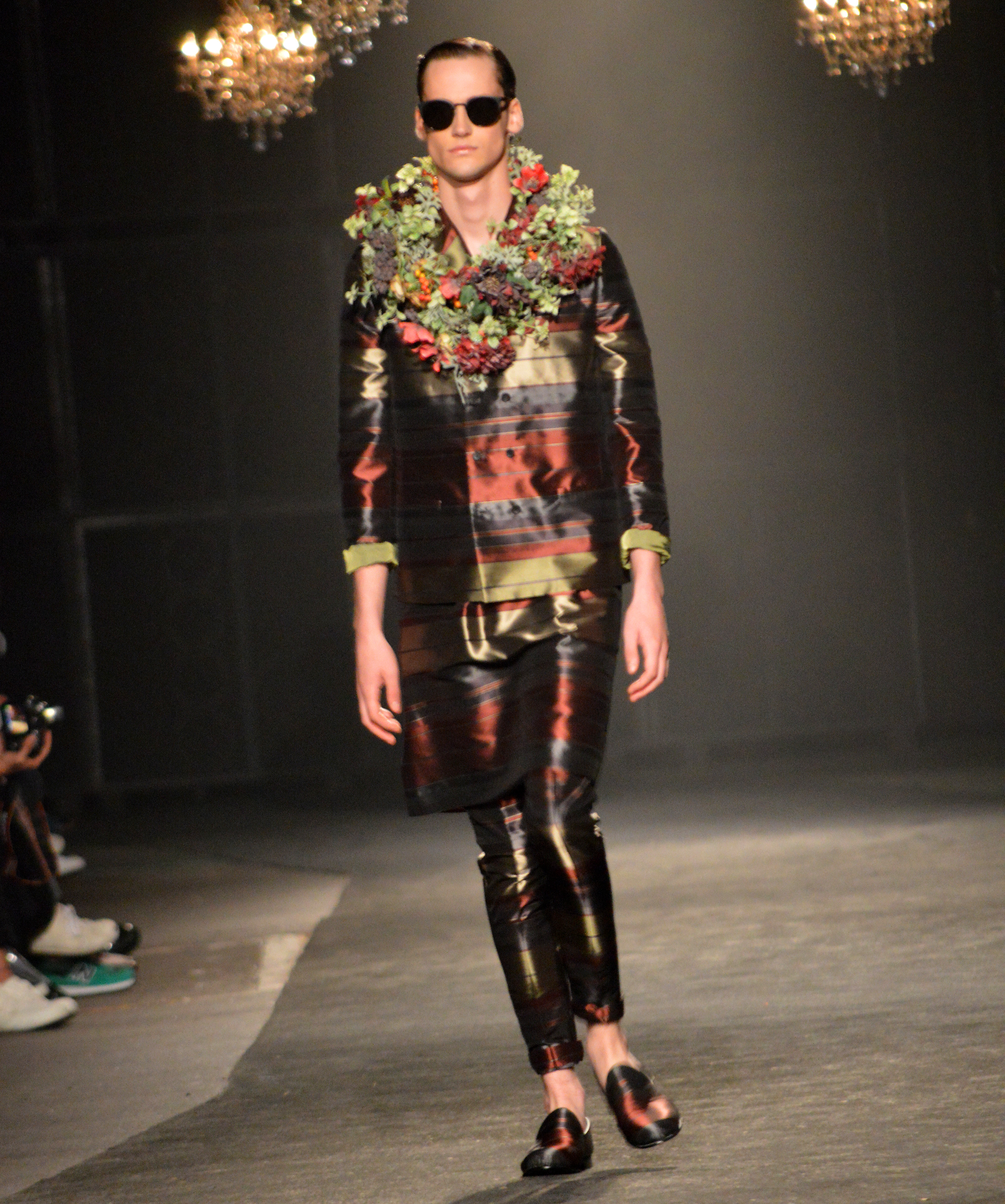 but accenting them with hard chain detailing, intimidatingly rounded shoulders, exaggerated biceps and bold graphic T-shirts. Likewise, youth favorite Sise continued in this vein, contrasting conventional tailoring with pleated skirts, as well as a host of streetwear staples in beautiful florals.