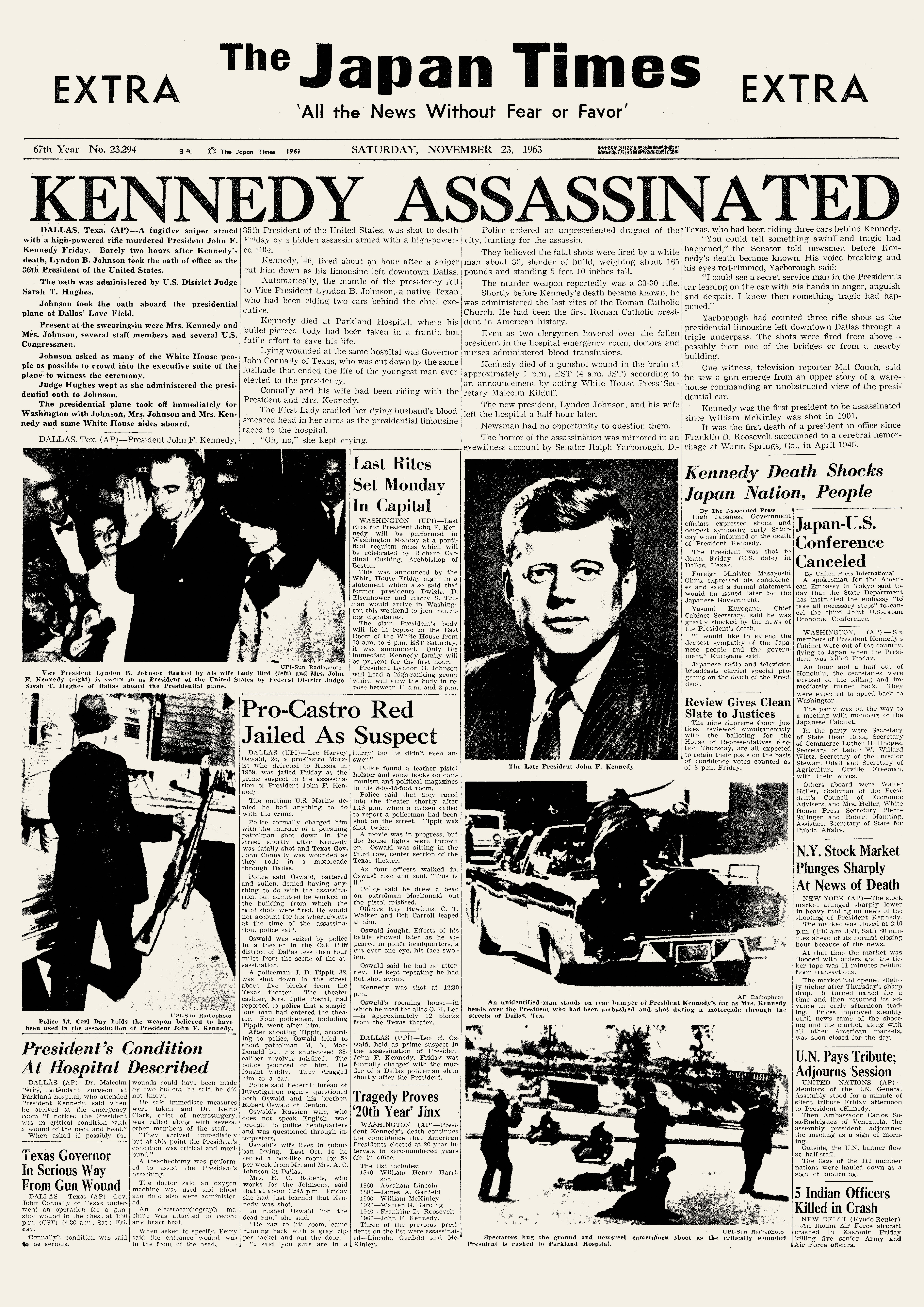 In Japan, Nov. 23, 1963, was to be a special day: live broadcasts from North America via the Telstar communications satellite had been scheduled to commence. The initial broadcast was to include a recorded message by Kennedy himself. Instead, those who tuned in that morning saw news reports of his assassination.