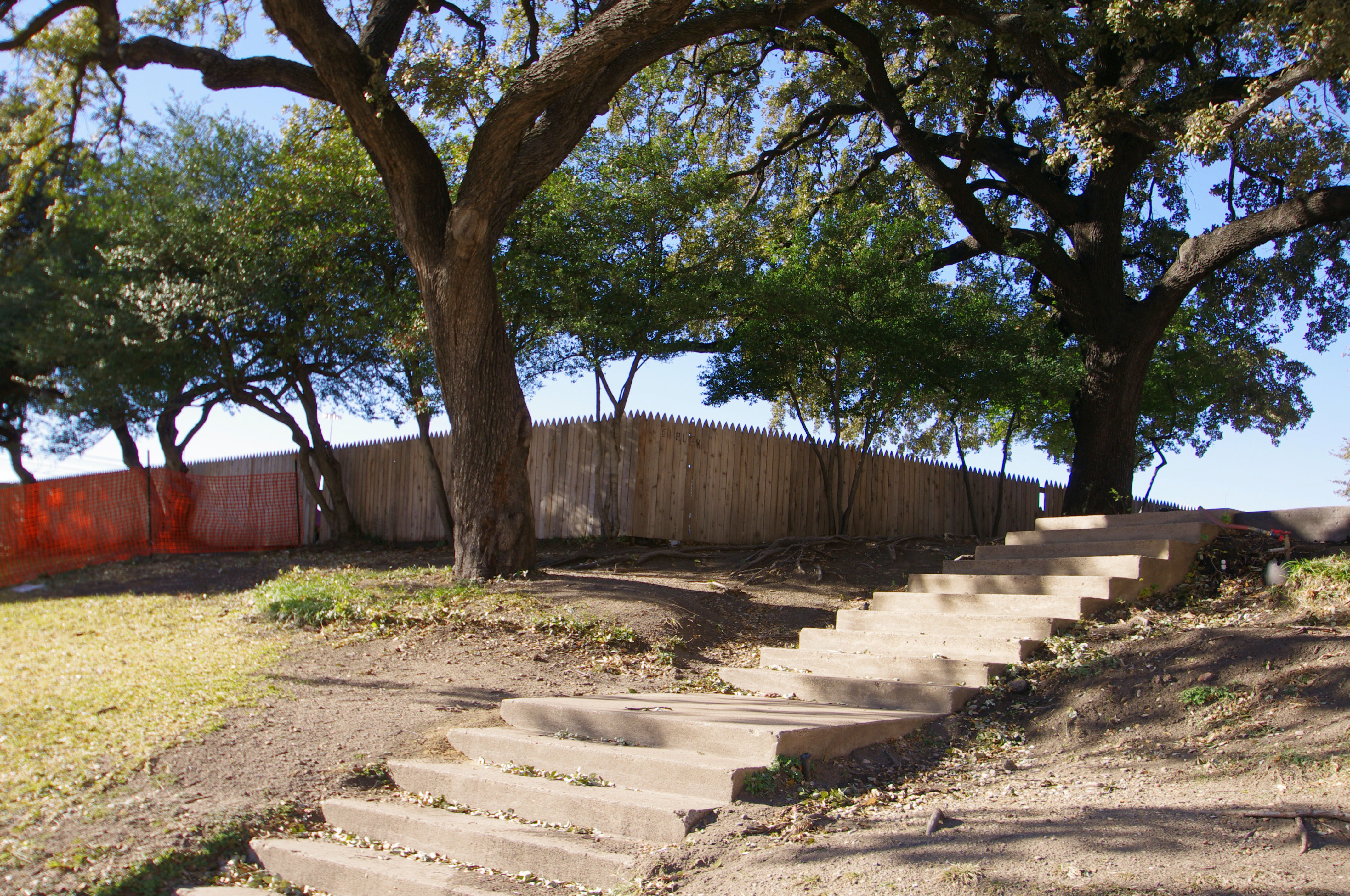 Contemporary additions can be seen as well. In the center lane of Elm Street, two white letter X's have been painted, about 30 meters apart, to mark the approximate spots where JFK was struck by a sniper's bullets.
