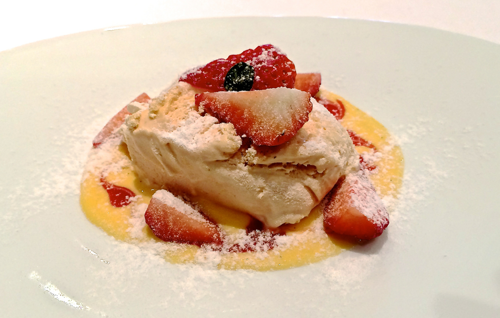 To mark the start of spring, Miyane has been serving seasonal specials, such as succulent grilled Kagoshima horse meat (in Japanese, sakuraniku). Also in April, his regional menu (lunch ¥5,000; dinner ¥7,000; advance reservation required), features lamb instead of pork, as a nod to the Piedmontese Easter observances.