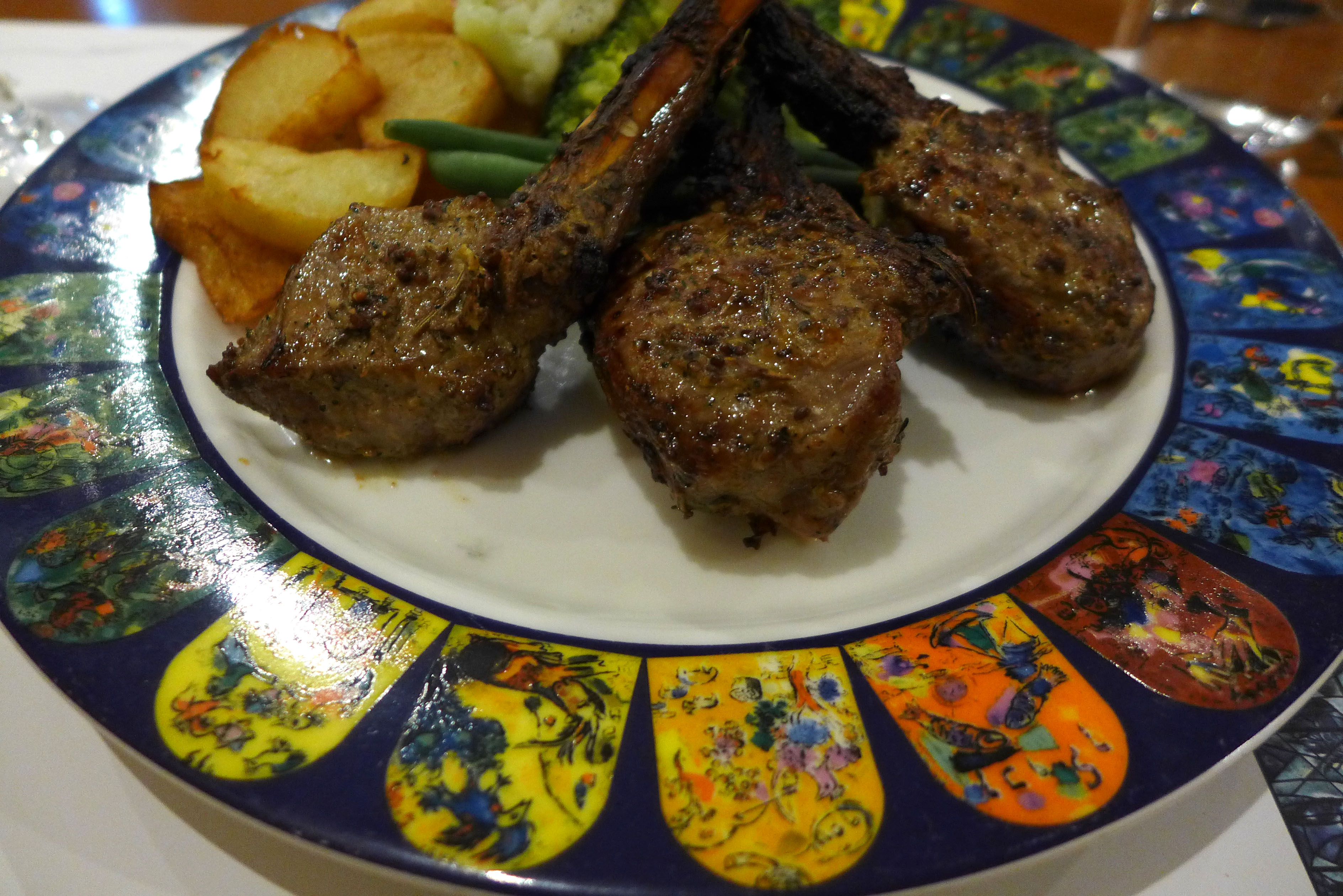 To get that communal atmosphere (and good food) in Tokyo, he recommended Shamaim (2F TM Bldg., 4-11 Ekoda, Toshima-ku, Tokyo; 03-3948-5333). In addition to being the capital's longest running Israeli restaurant, Shamaim is also a fantastic deal: The all-you-can-eat dinner course is just ¥2,100 per person. First come the various starters: hummus and pita, falafel (deep-fried balls of ground chickpeas) and tahini (sesame paste), and chopped salads. These are followed by chicken schnitzel (breaded and fried chicken breast) and lamb kebab (minced meat grilled on a skewer), fried potatoes and majadra (rice with lentils), and then seconds and thirds as you like. Dessert such as malabi (sweet milk pudding) is extra.