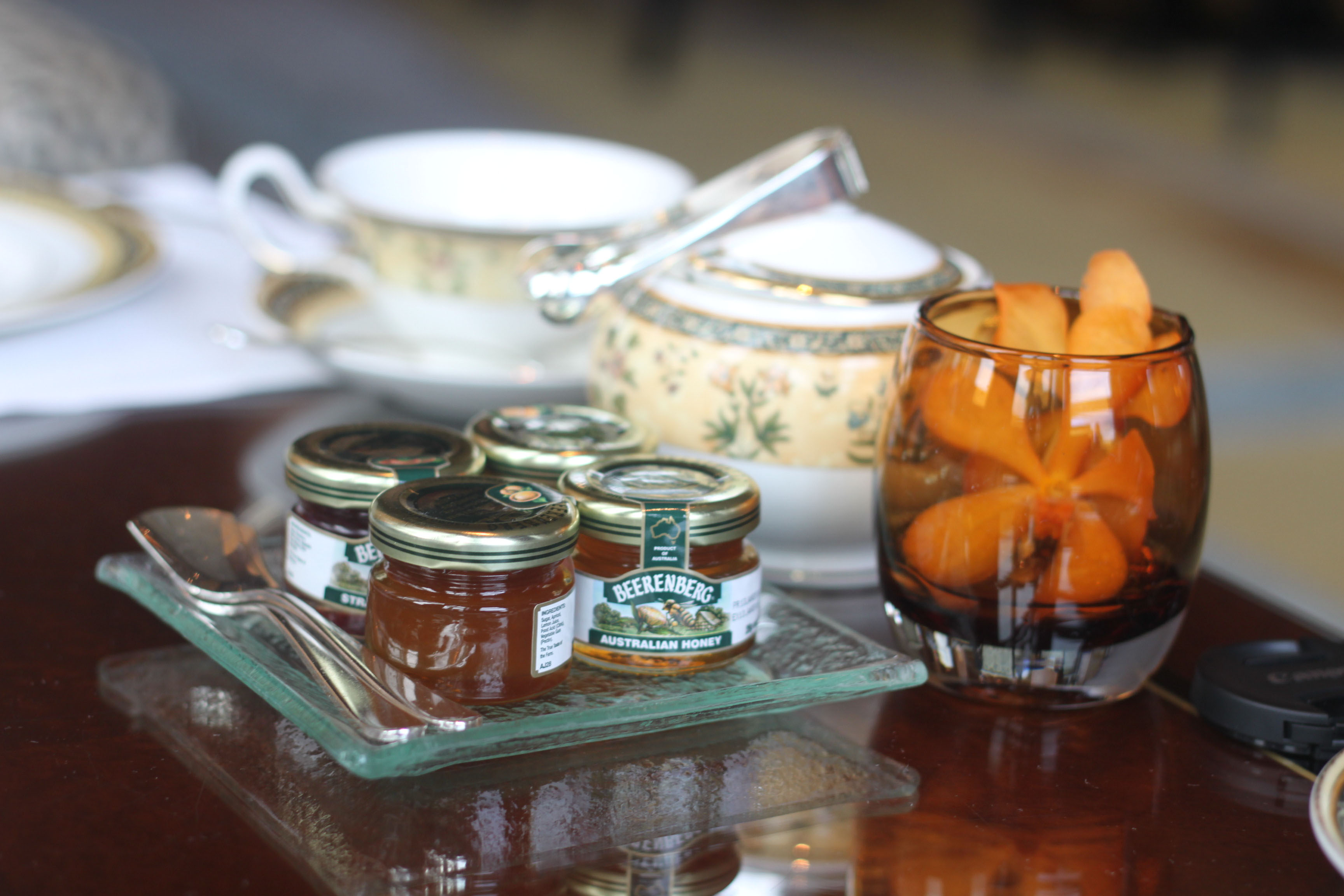 Fortunately, the staff did not bat an eyelid and — errant toddlers retrieved — we were seated at a low table immaculately laid out with china and silverware, surrounded by a plush sofa and armchairs.
