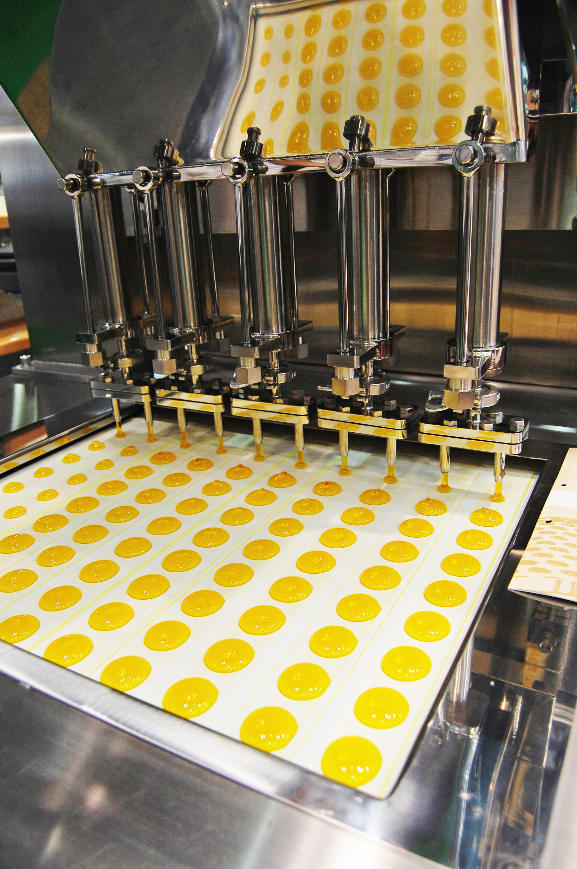 Near the entrance, a display by pump manufacturer Heishin had created a buzz. The company was showing off the latest model of an apparatus that could make candy-colored "caviar" filled with liquids such as fruit juice, olive oil or chilled broth. The process, called spherification, involves mixing the liquid with a solution of sodium alginate and dripping it into a bath of calcium chloride, which forms a thin membrane around the substance. First popularized by Spanish chef Ferran Adria, the technique is now trickling down into the mainstream; according to sales manager Terufumi Suga, Heishin's spherification pumps, which cost ¥7-10 million, are being used by yogurt producers and sweets manufacturers in Japan and internationally. Look for it in sodas next.
