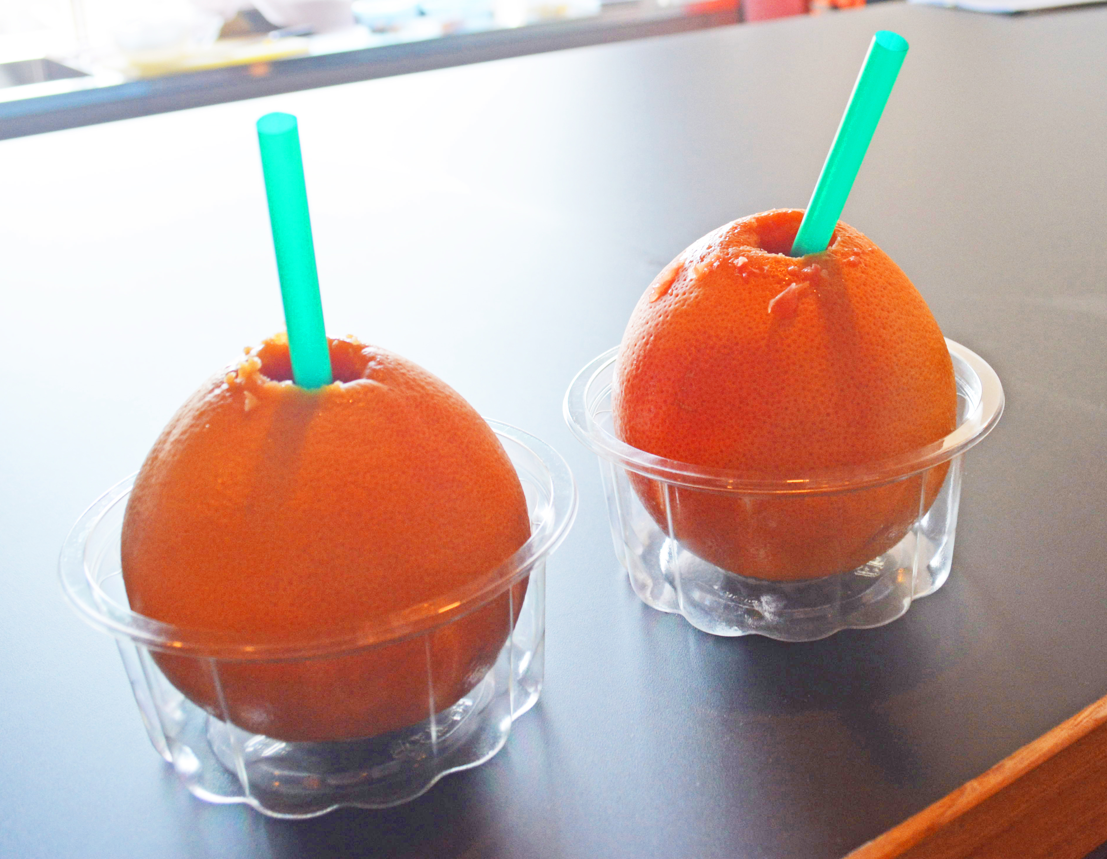 When my friend eventually arrived we went inside, and our first call was to a fruit bar on the second floor, where we drank grapefruits from California in a method that could surely come under the banner of paleo dining. The bartender, Masami Houri, juiced the fruit inside its skin with a Cajyutta — a high-tech Japanese fruit drill — and inserted a straw. My companion and I sat at the bar, draining the fruit; it was, as the saying goes, worth waiting for. Although mind you, I could have done without the wait too.