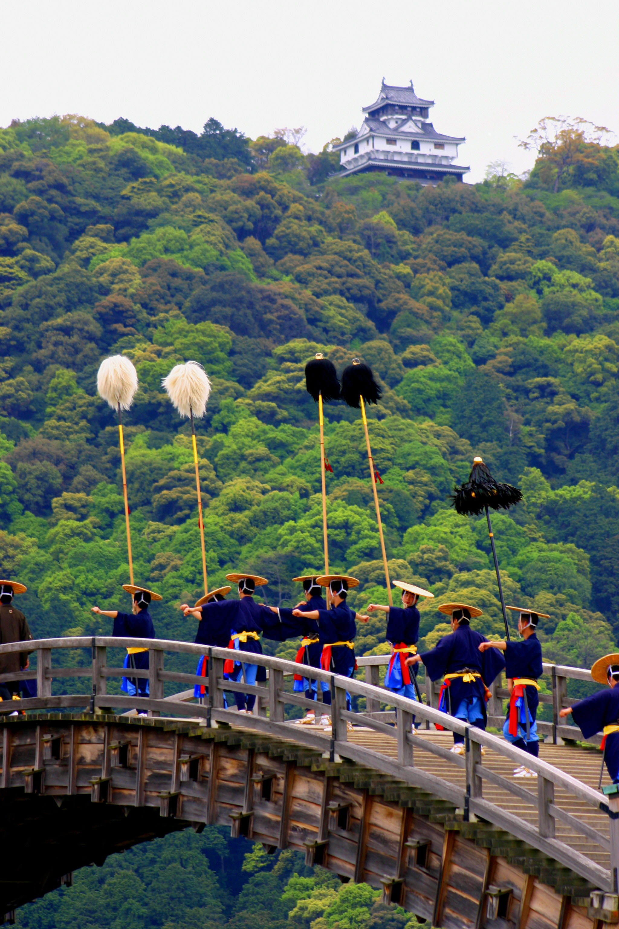 Back at the festival, the day's main event is about to begin: a reenactment, in full period costume, of a daimyo's (feudal lord) procession over the bridge. The portentous thunder of giant taiko drums roars up from the riverbank like an approaching tempest.