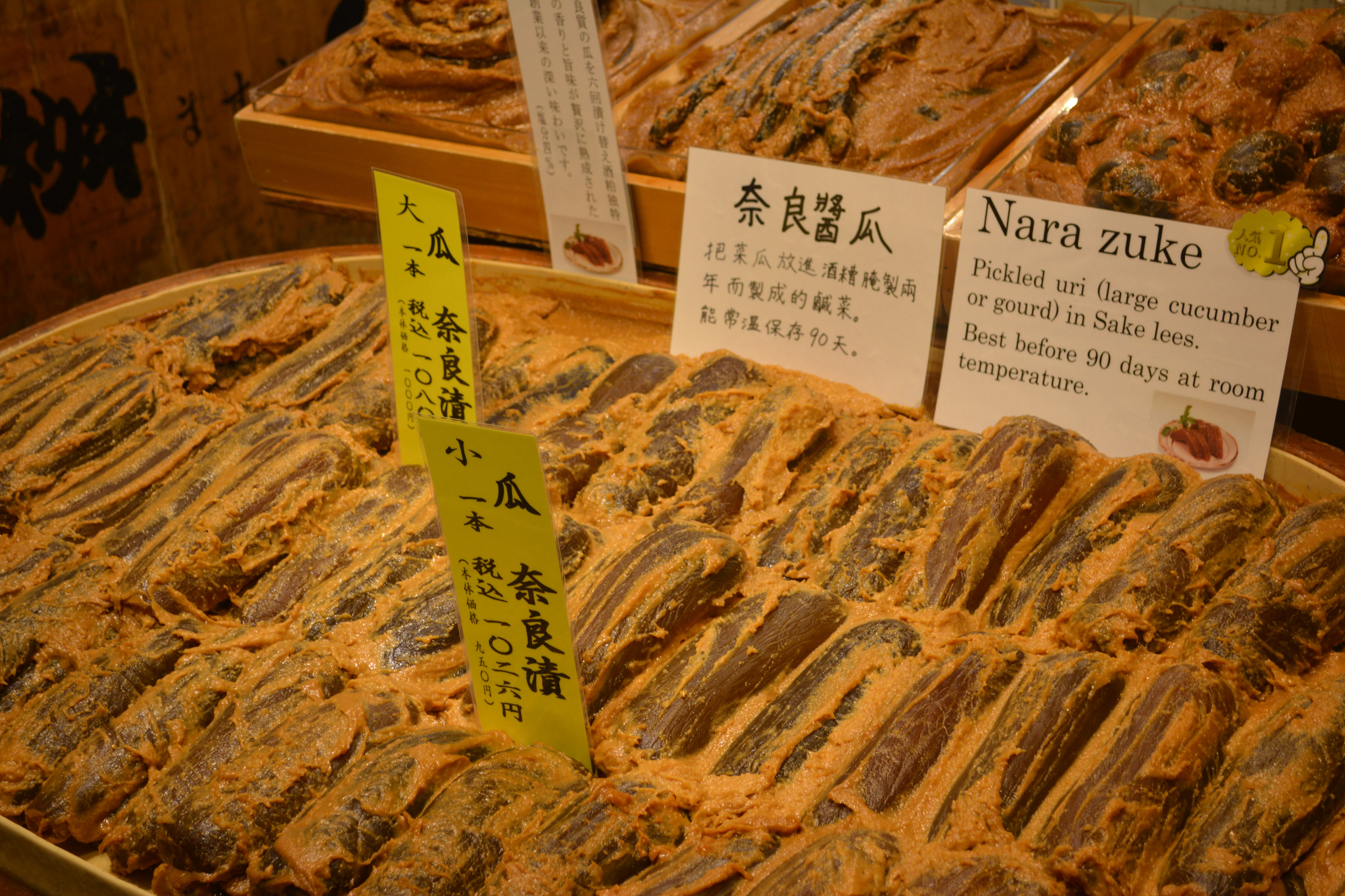Uchida (075-371-3195; www.kyoto-uchida.ne.jp), near the western end, has been selling pickled vegetables in Nishiki since 1937. In the process of pickling many vegetables become unrecognizable, especially naradzuke uri, a pickled gourd. This one is probably not for everyone, but there is plenty that could be, from eggplant to radish and pumpkin.