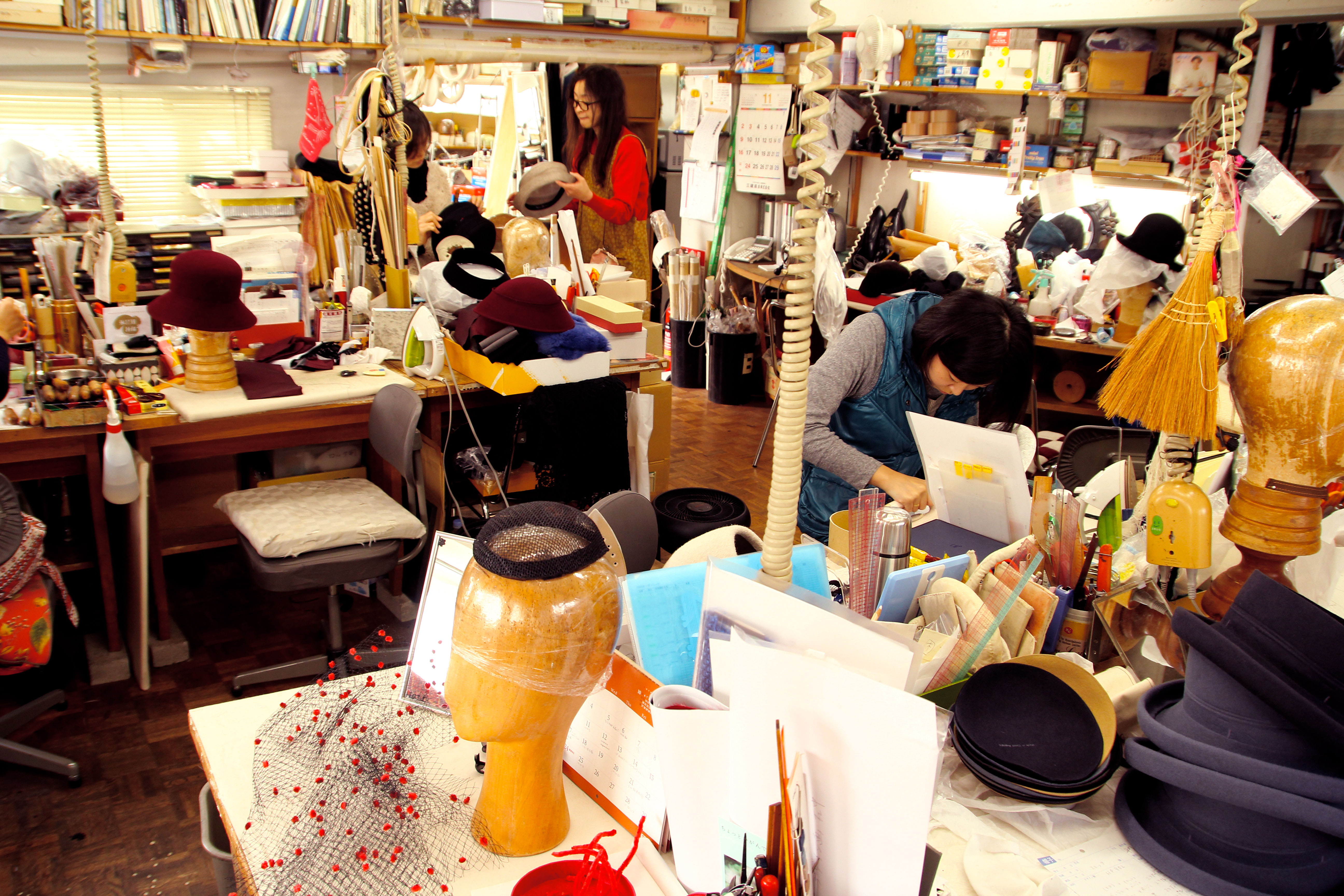 Handmade toppers in the jewel tones of fall vegetables and autumnal leaves grace the displays, and I am drawn inside, where I meet 50-year-old head designer and owner, Ohko Ishida. In a voice as soft as the rabbit-fur felt of her chapeaux, and in nearly fluent English, she tells me that she has just taken over the business from her late father, world-renowned designer Akio Hirata (1925-2014), who learned many of his hat-making skills in Paris.