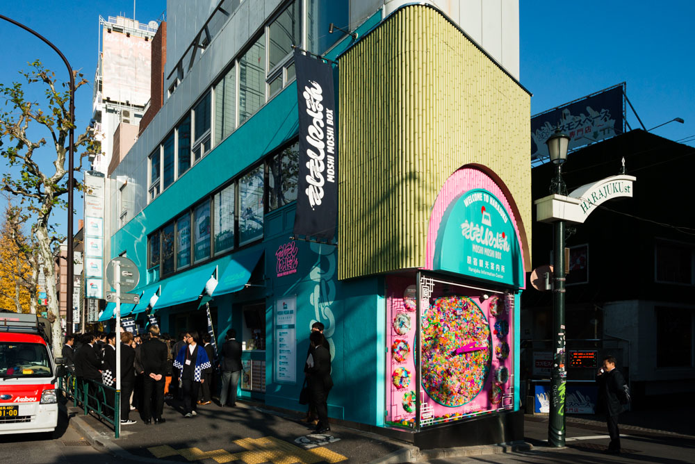The Moshi Moshi Box, which had its public inauguration on Christmas Day, is a tourist information center with a twist. Oriented primarily toward English-speaking visitors, the building offers standard facilities — free Wi-Fi, ATMs, currency exchange, souvenirs and bilingual information — all while dressing them up in cutesy visuals befitting the surroundings. Situated in prime location on Meiji Dori, the building is unmissable to pedestrian traffic exiting Takeshita Dori, the district's iconic shopping mecca. Complementing Asobisystem's multimedia output — spread across the Web, TV and events — the Moshi Moshi Box is the latest addition to the company's Moshi Moshi Nippon initiative to transmit Japanese pop culture across the globe.