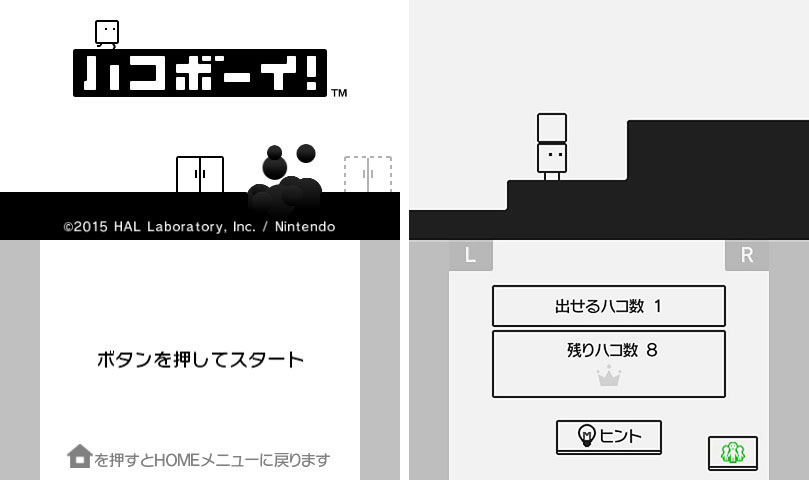 "Hako Boy!" ("Box Boy!") is, unsurprisingly, about a box-shaped boy. The downloadable title features stark and simple, black-and-white graphics, and is a platformer — with a puzzle game spin.