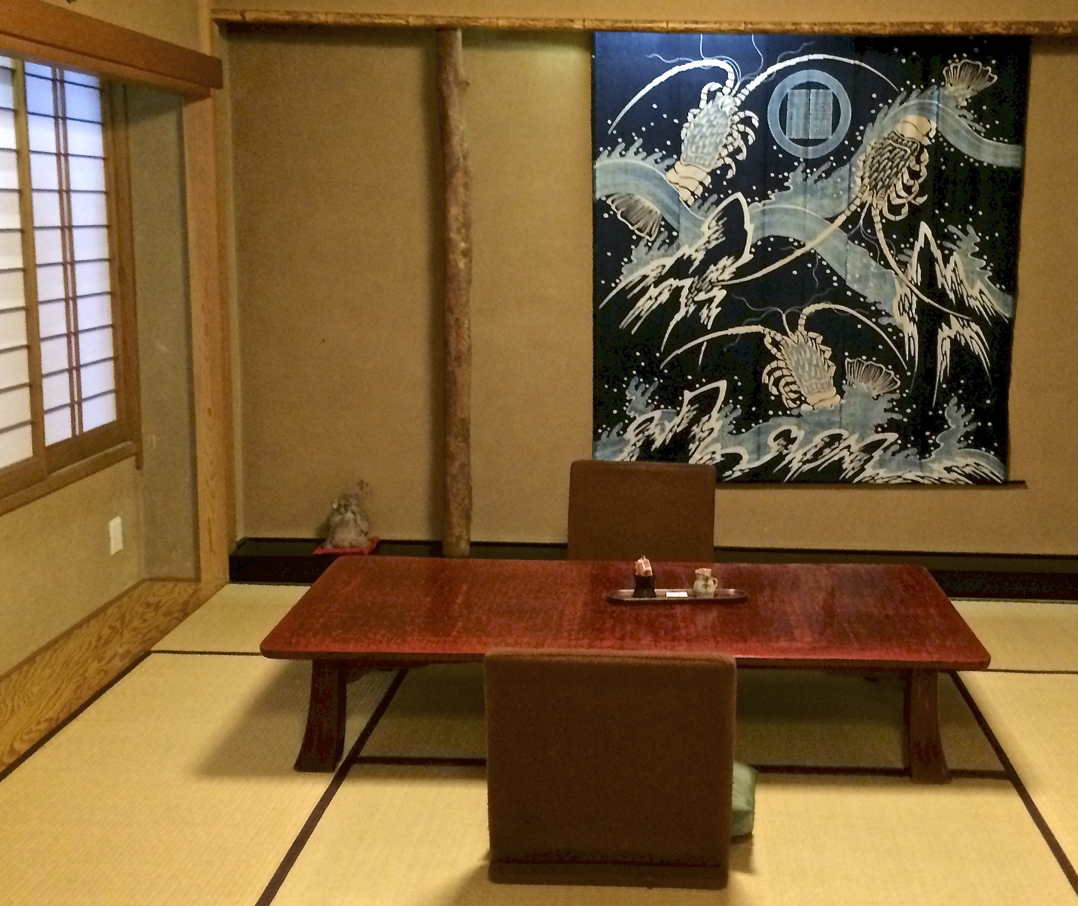 A waitress, also kimono-clad, will bring in a selection of simple appetizers. Seasonal sashimi; an aemono (dressed salad) of vegetables or sansai (wild herbs); some tamagoyaki omelet; and a couple of dried sardines that are lightly salty, nicely chewy and perfect with a dram or two of sake, hot or cold.