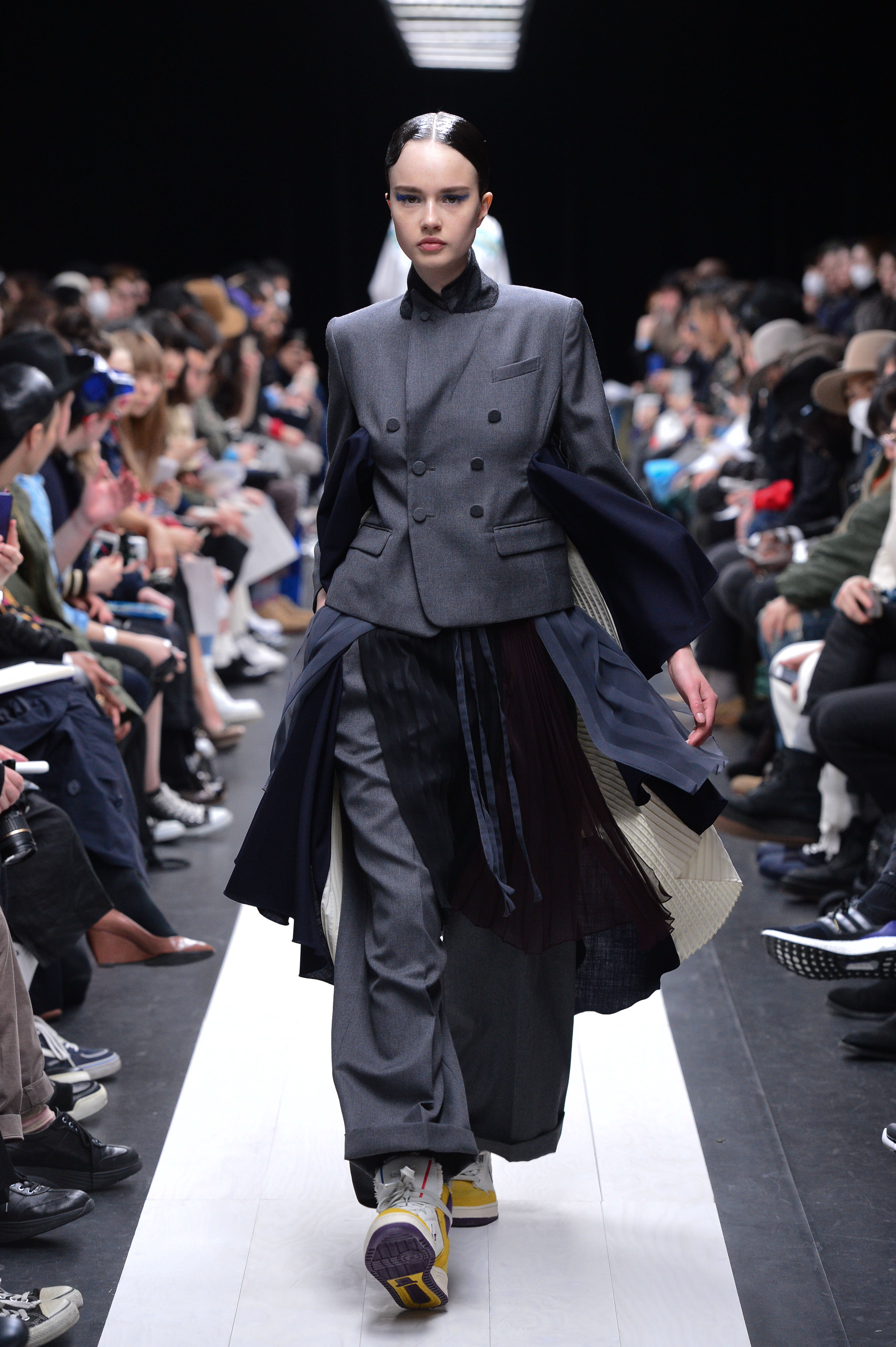 The wildcard of the week was subversive designer Mikio Sakabe's eponymous brand, which eschewed a catwalk location in favor of the smoky Shibuya Club Quattro, where his models barged through a packed crowd, allowing the audience to just get a glimpse of the fashion before it was gone. Sakabe's challenging take on modern masculinity wasn't the only progressive element in the show, with the canny designer effectively crowd-funding the show by putting on a ticketed version of the show for his cult fan base.