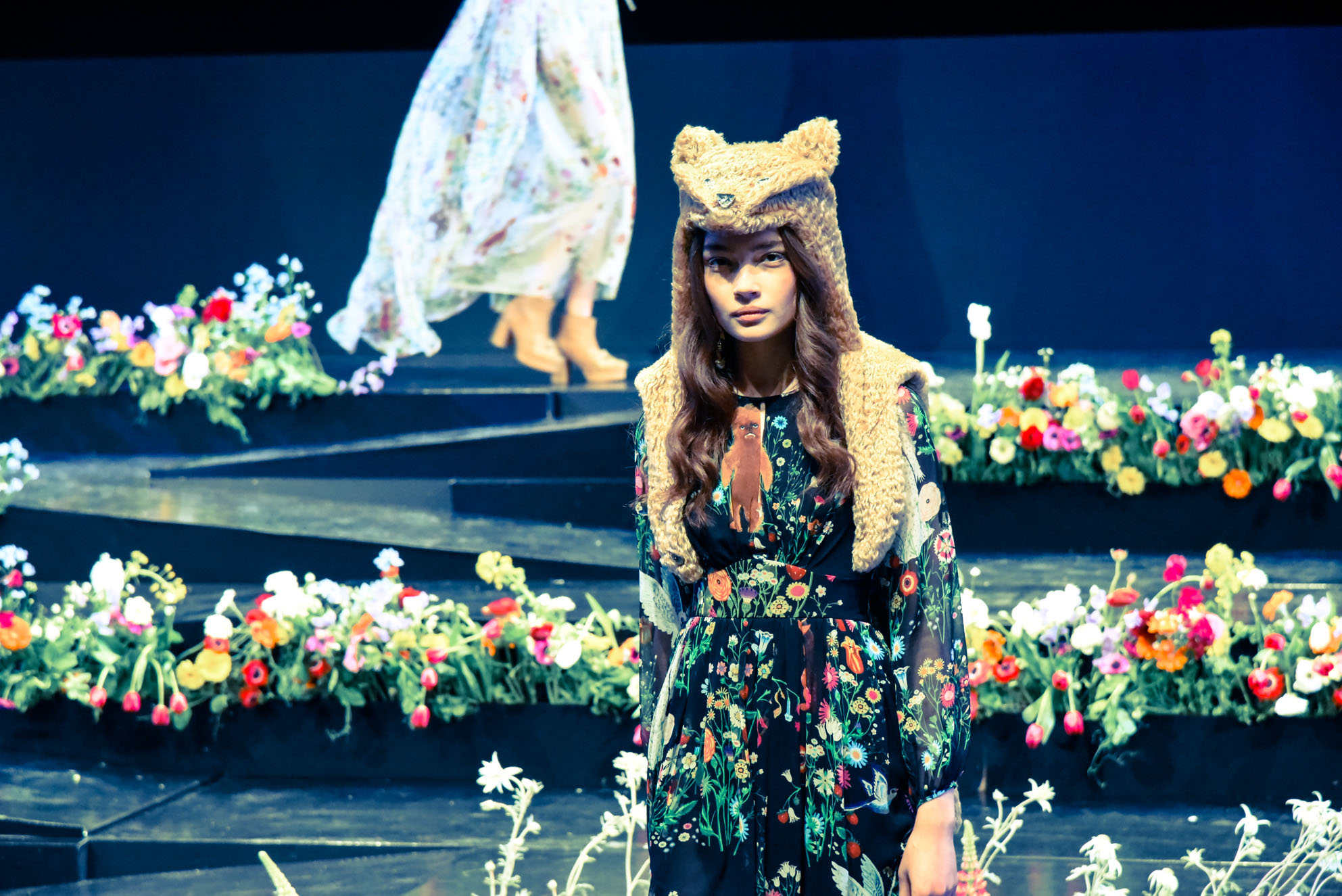 Thailand-based brand Sretsis lived up to its reputation as the adopted star of Mercedes-Benz Fashion Week Tokyo, kicking off festivities with a '70s floral fantasy show depicted in the backdrop of a blooming terrace garden. Models wore feminine embroidered lace creations capped with furry fox hats and dog-face slippers.
