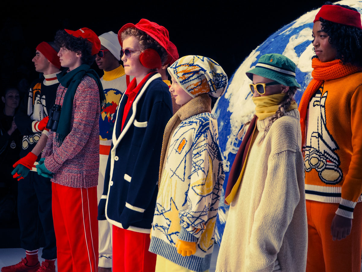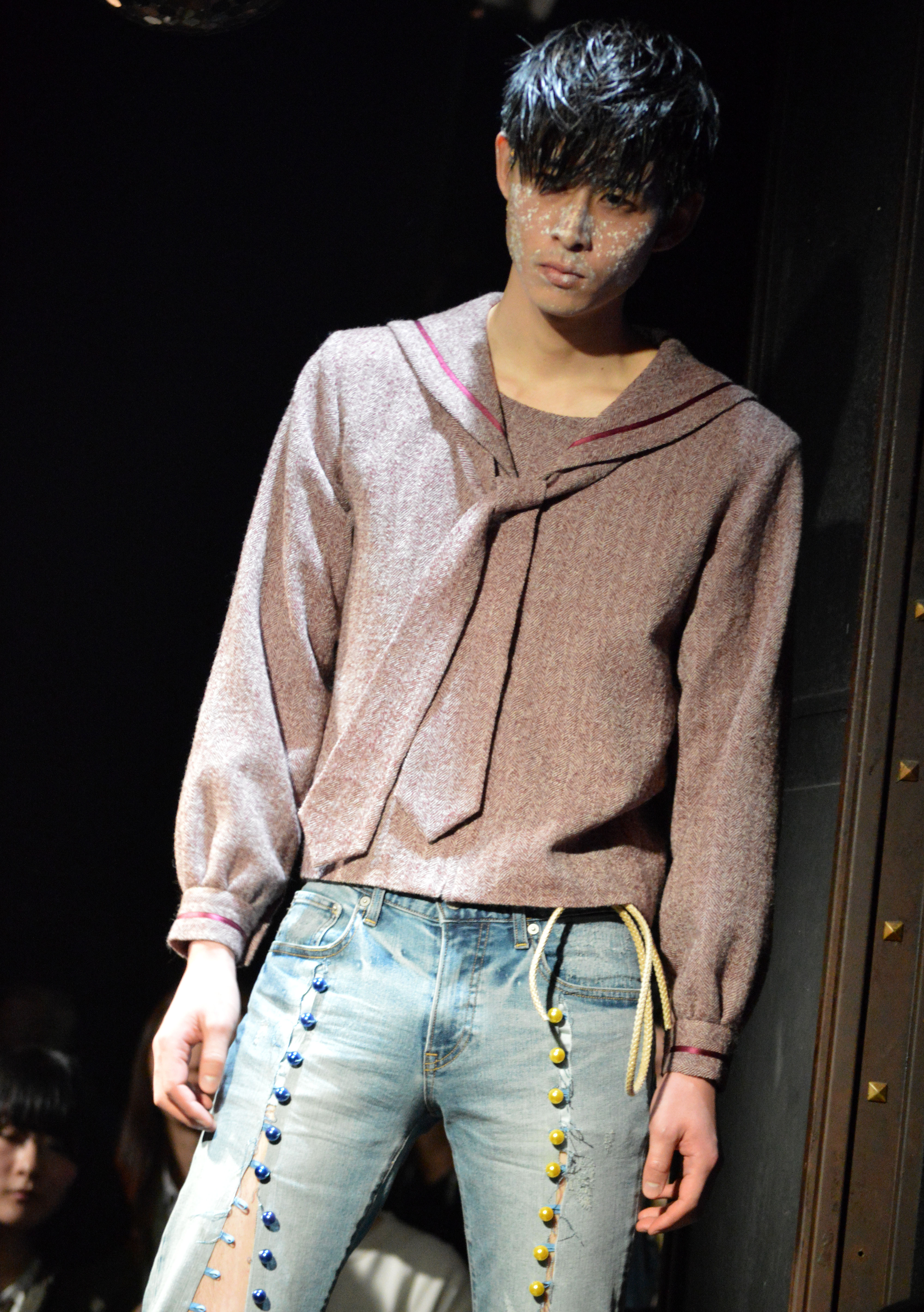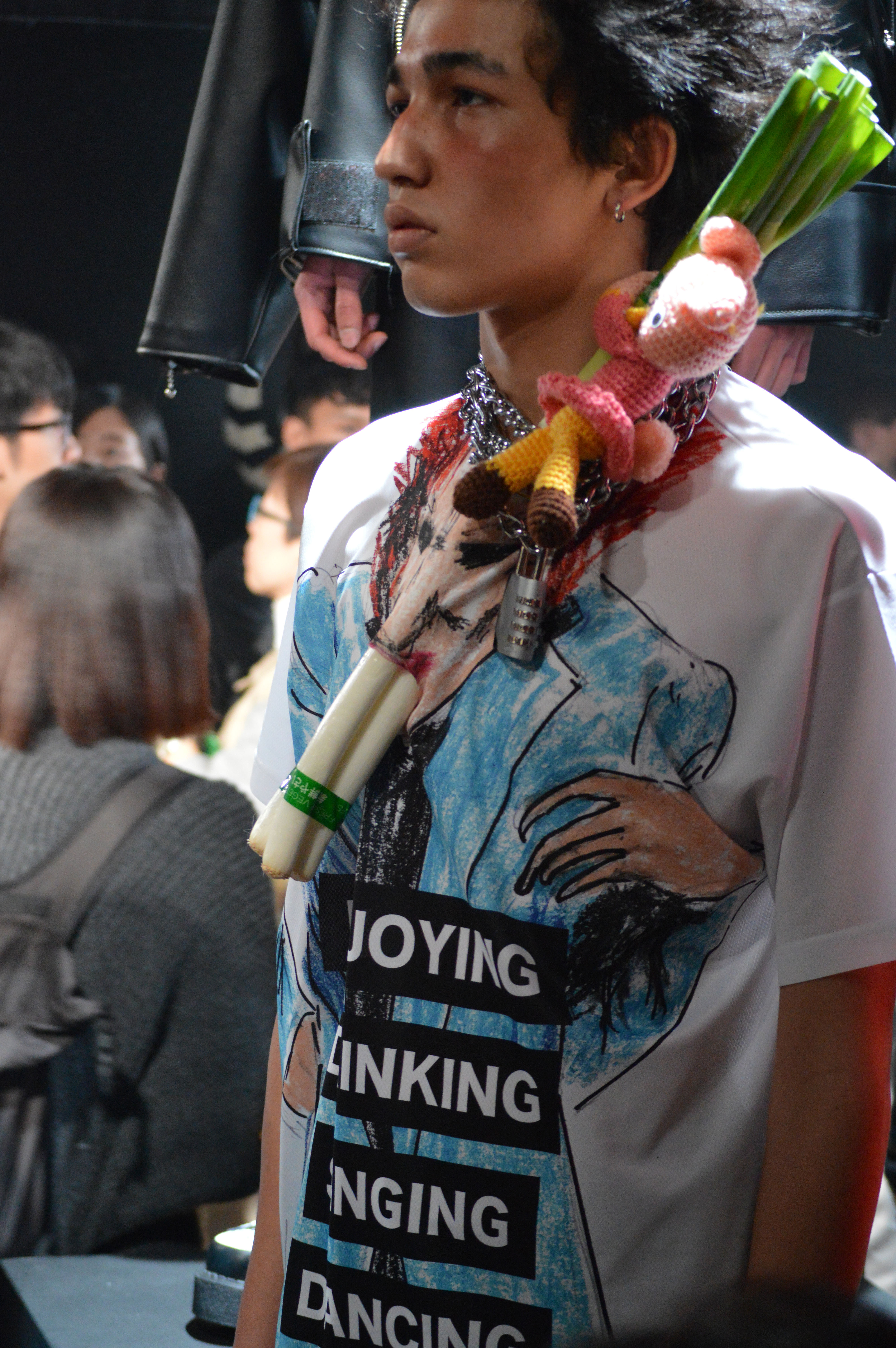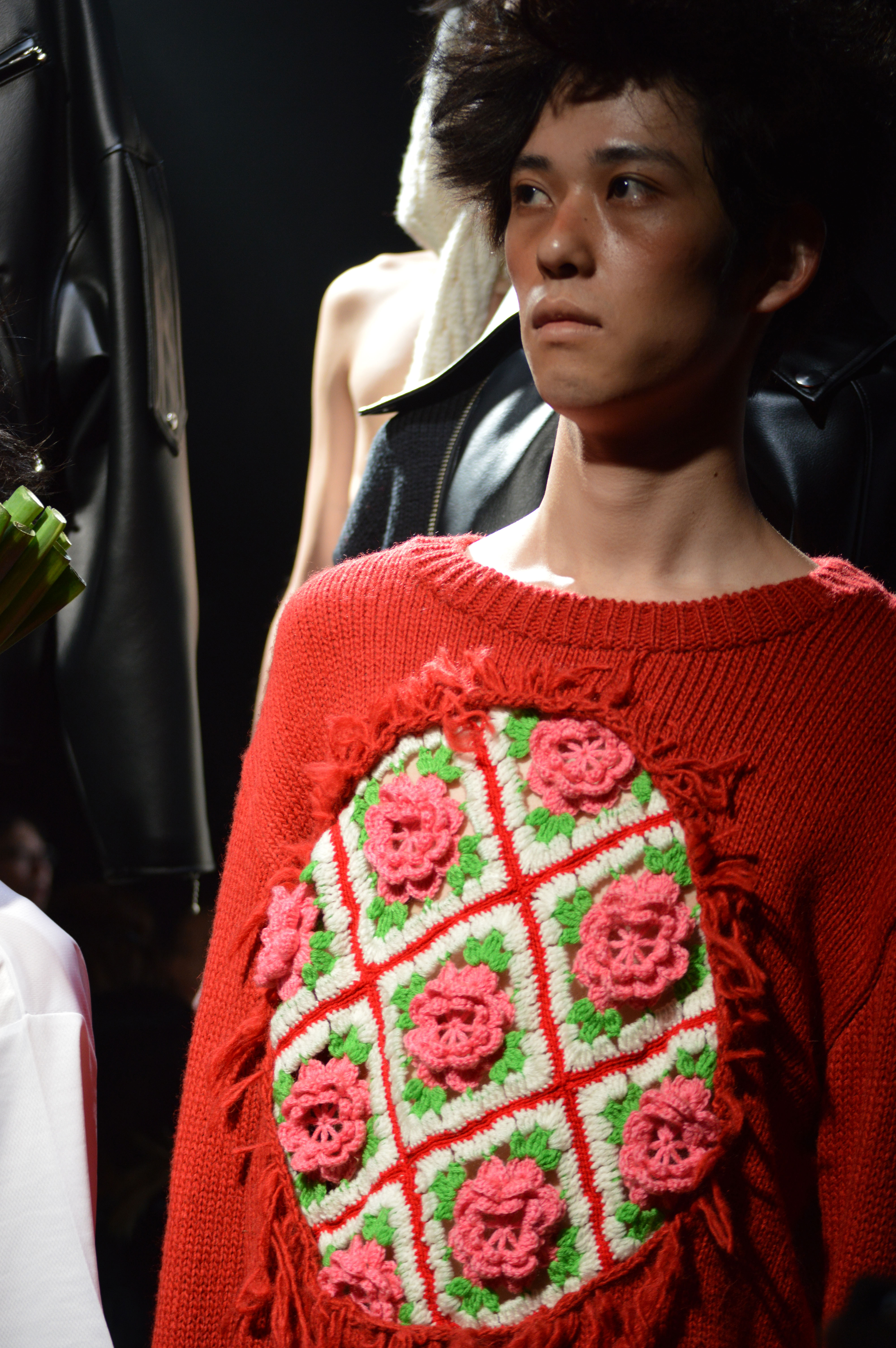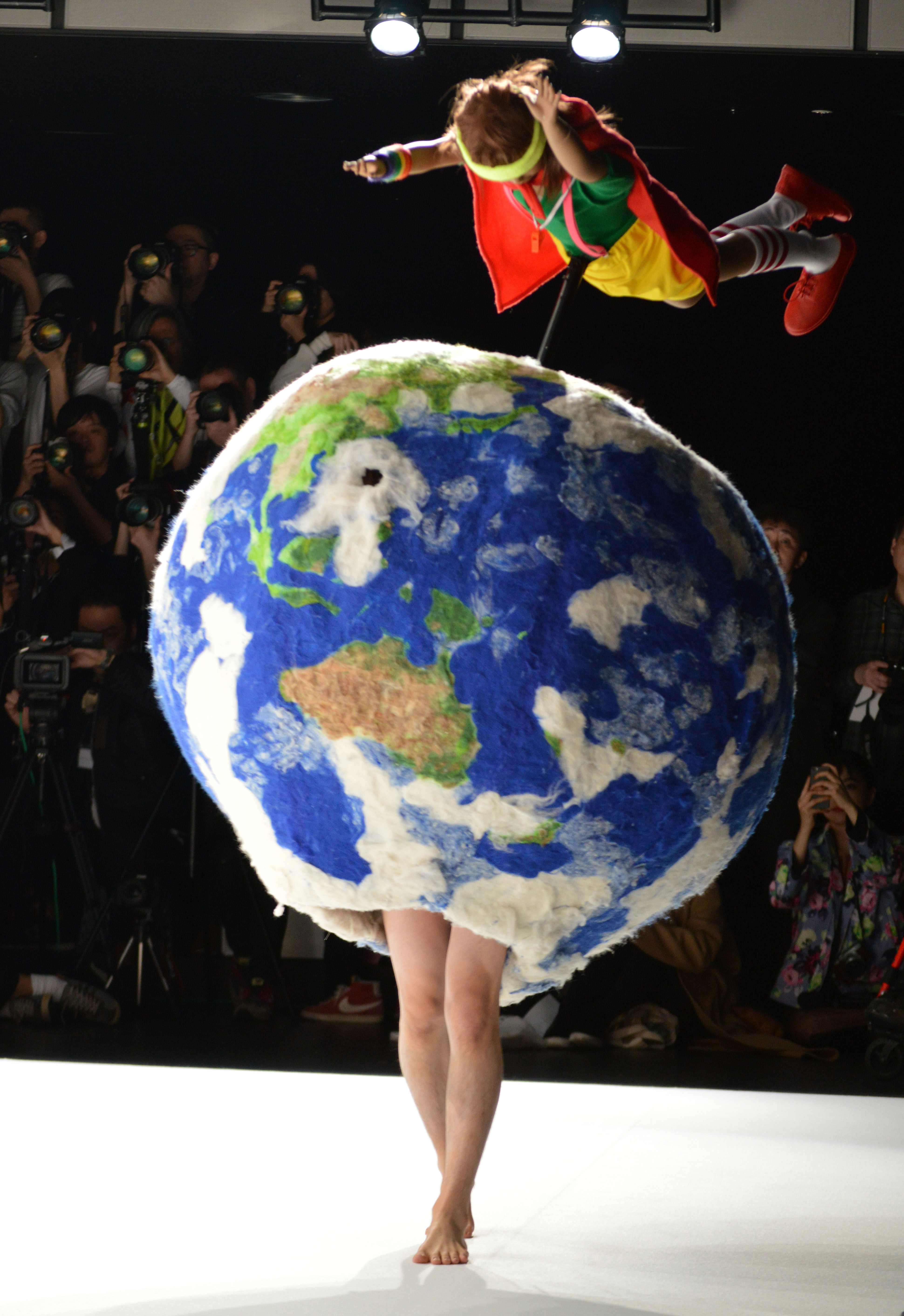 Artistic label Writtenafterwards entertained the crowd with a somewhat literal interpretation of world peace, presenting gigantic Earth costumes and an alien making a peace offering in the form of a flower. Sandwiched between all of this was a wearable unisex collection of hand-knitted sweaters that featured child-like doodles of rockets and stars in all colors of the rainbow. The brand may have been unconventional, but Yoshikazu Yamagata is one of the most sought-after designers from Japan at the moment and was recently short-listed for a prize from LVMH (Louis Vuitton's parent company).