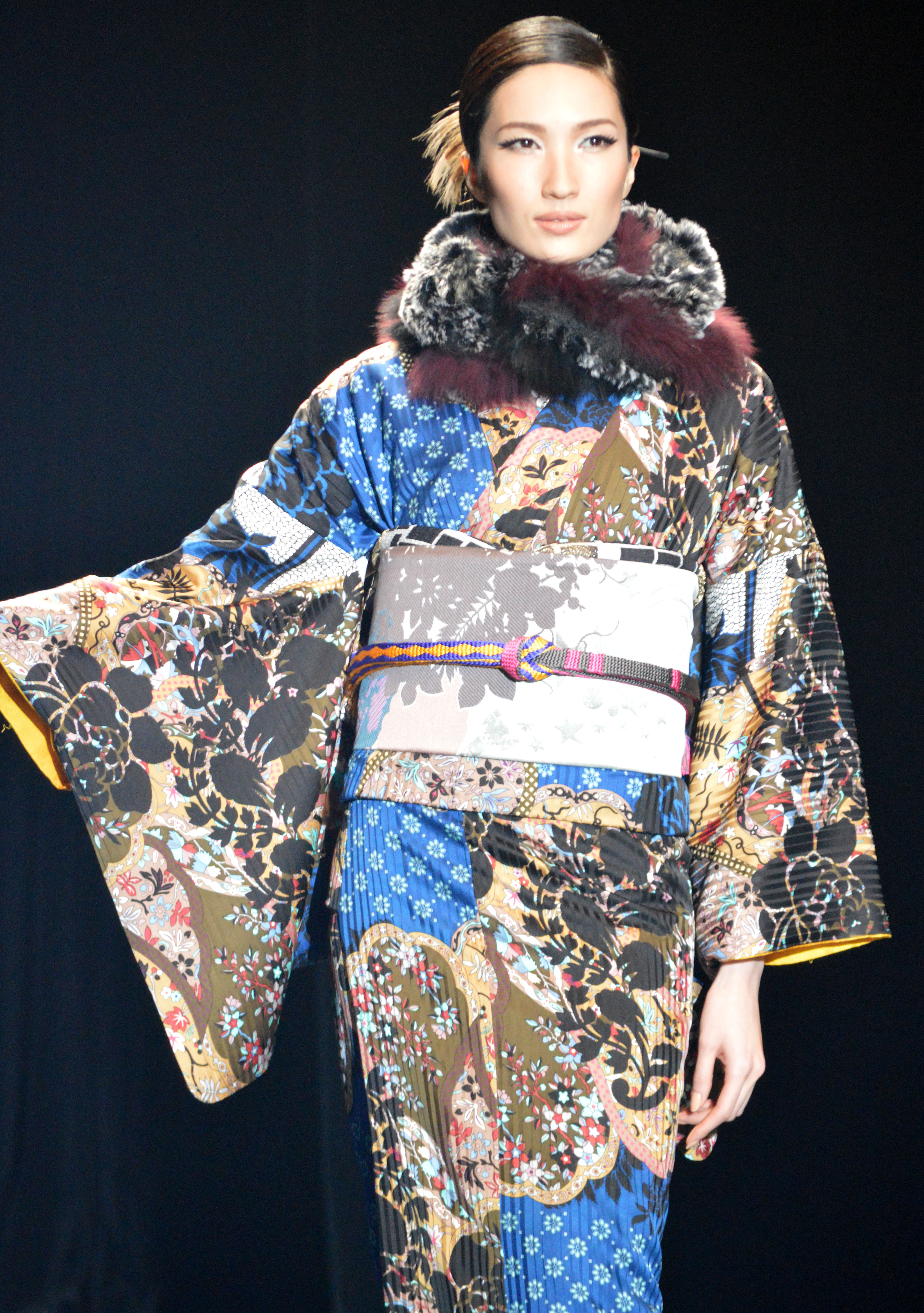 Keita Maruyama creates designs for celebrities, so it's fitting his show was split into distinct acts — just like a movie. In a show that had a little something for everyone, the models on the runway presented Chinese noir, retro Parisian in pastel, a tweed country-girl romp, and a parade of formal suits and gowns set to the song "Blue Velvet." Maruyama certainly looks to be a wide-ranging designer; he also has a wedding line and is head of "New Yorker" menswear.
