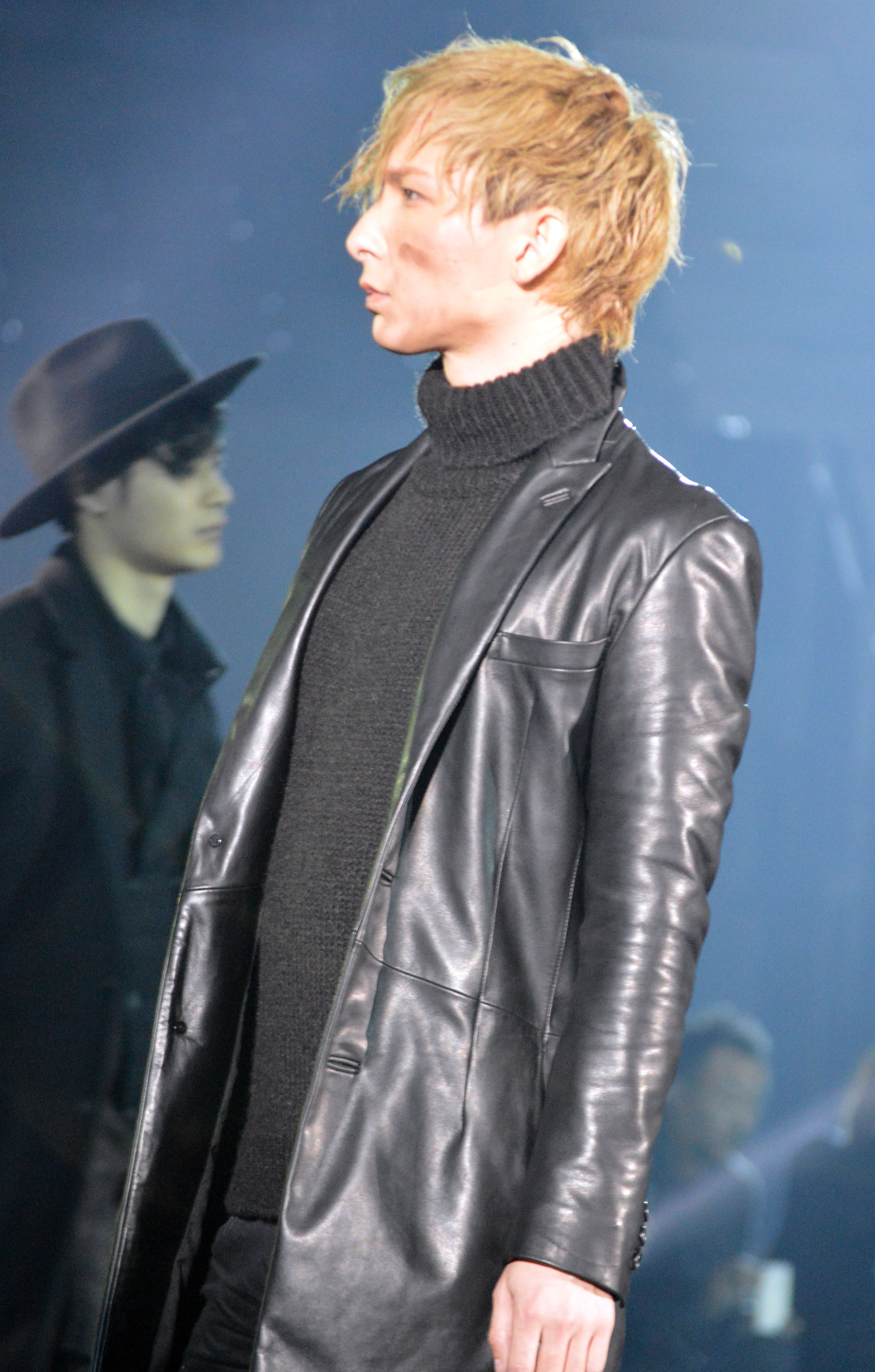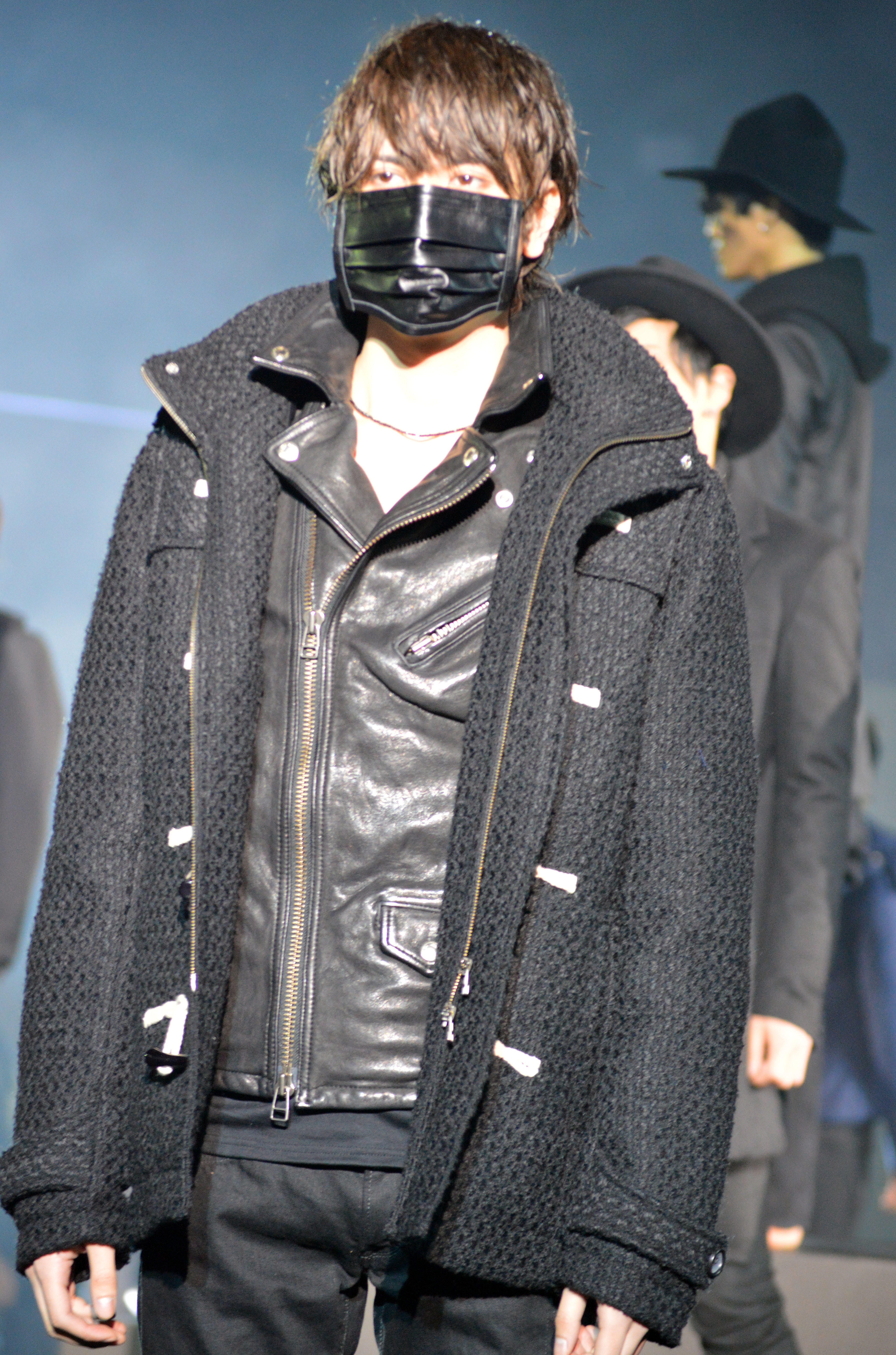 Key amongst the representative fashion rarely seen on a catwalk was new high-end street brand Black by Vanquish from the same Ceno group responsible for 109 favorite Murder License. It was the only fashion show on the official menswear schedule that not only placed Japanese models on center stage, but also models of the same stature you might find outside the venue. Beyond the inclusive model choice that might persuade the average Tokyo gent that they are welcome at the shows, the overall fashion itself was a pleasantly aspirational take on the city's staples, with razor-sharp riffs on the pre-existing contents of the average wardrobe and even a mundane face-mask rendered cool in black leather.