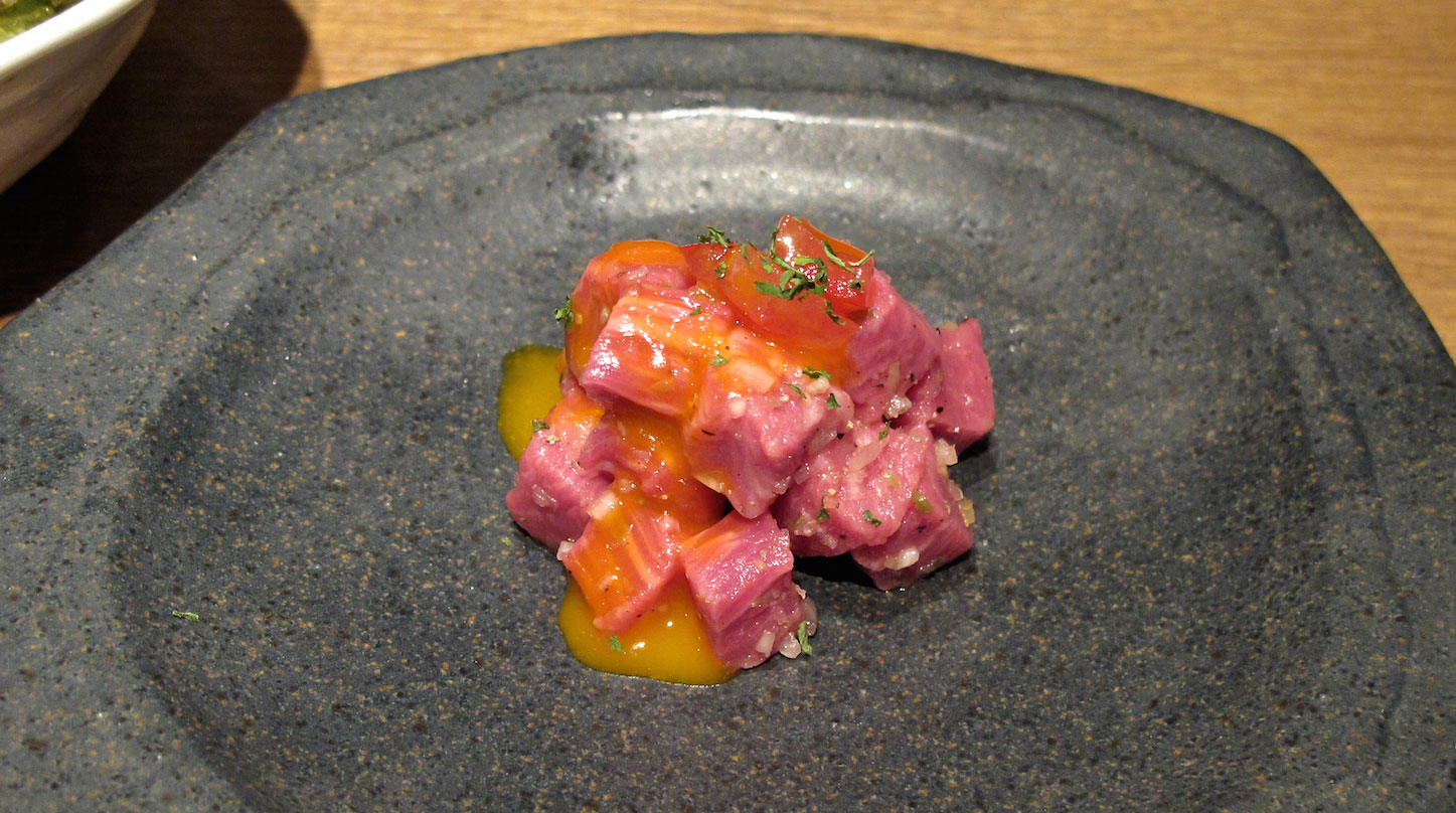 Nakahara also has a license to serve raw beef. And his beef tartare is an eye-opener: Prime tenderloin is cut into small cubes rather than finely minced, making it more textural. Dressed with uncooked egg yolk and only the lightest of seasonings, this is raw beef at its rich, creamy, unadulterated best.