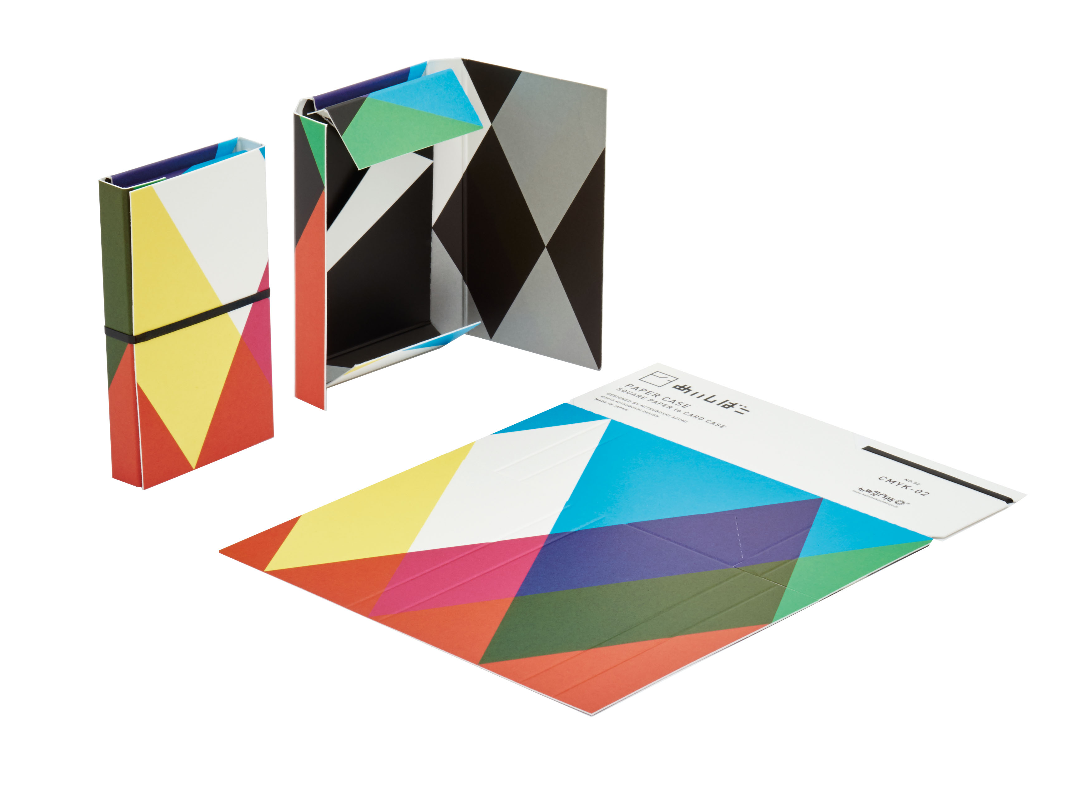 In a similar vein, the Meishibako of paper designers Kami no Kousakujo is a fold-it-yourself business-card holder made from a square sheet of cardboard. All you need is a pair of scissors and nimble fingers. The original Meishibako was made from what the company calls reversible mermaid paper — cardboard printed with a pattern on both sides. This new version has been made more durable with a matte PP coating and it comes in three bold CMYK color designs. Each one is ¥500, can hold up to 30 business cards and be folded with either surface pattern on the outside.