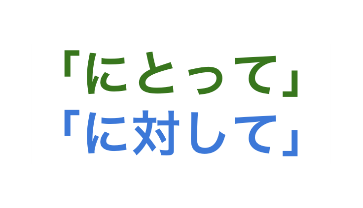 Today, we will explain the difference between the two phrases にとって and に対(たい)して, which some Japanese-learners get mixed up. In the pattern X(noun)はY(person)にとってZ(phrase), the basic statement is XはZ (X is Z), as in 森(もり)さんはお母(かあ)さんみたいなものです (Mrs. Mori is like a mother) from Situation 1. Yにとって limits the statement to the range of Y, i.e., the statement Z is from the standpoint or viewpoint of Y, as in 私(わたし)にとって (to me) in Situation 1. The noun-modifying form of Yにとって is Yにとっての, as in 私にとっての幸(しあわ)せとは、家族(かぞく)と仲良 (なかよ)く暮(く)らすことだ (Happiness for me is living with my family, getting along well with one another). Thus, Z is usually an adjective phrase, noun or a noun phrase + predicate.