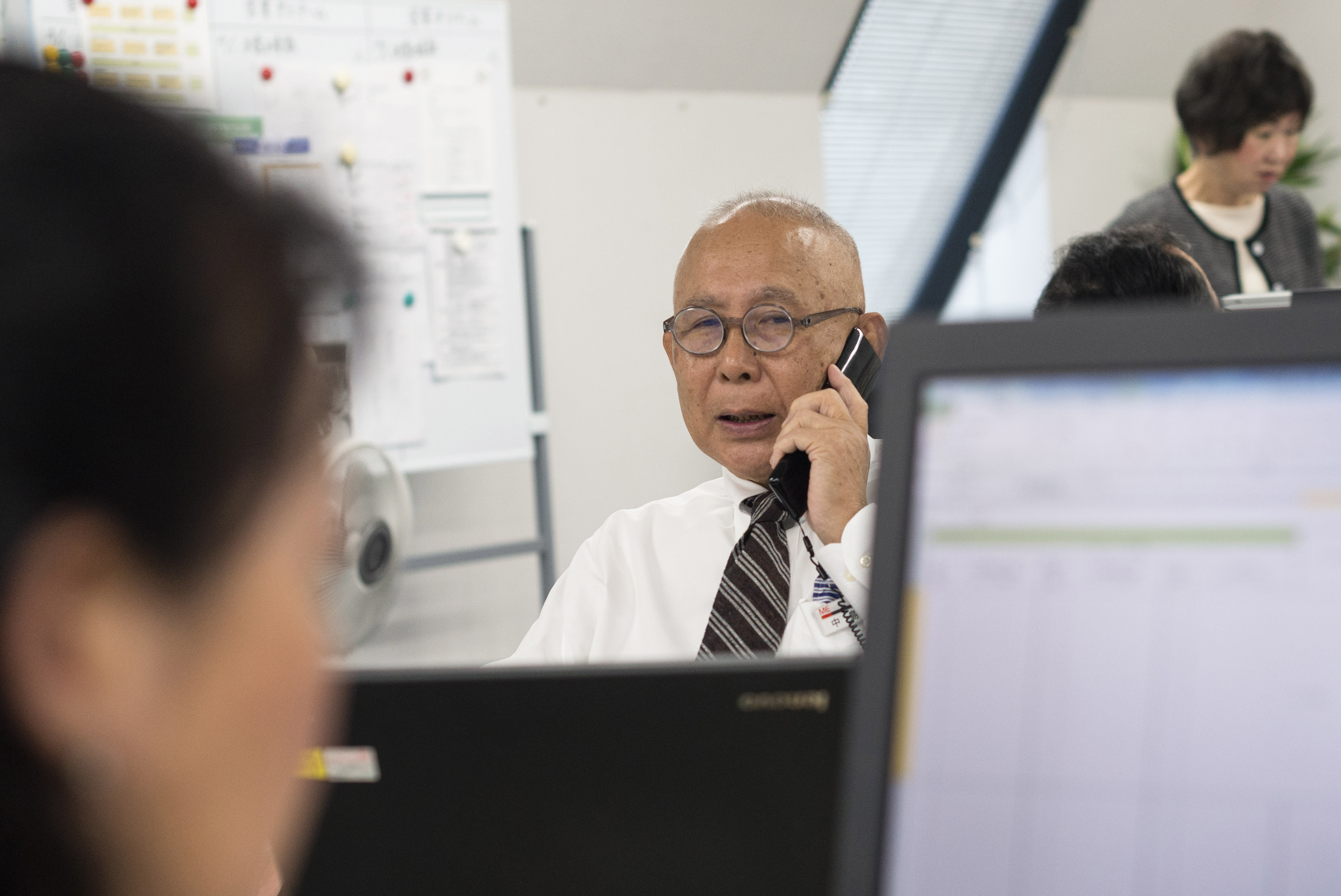 On it is printed a list of companies Nakajima deals with, and in neat handwriting next to each is a number — the maximum age, he says, that those businesses are willing to accept new recruits. Some are as low as 50, others as high as 67, he says, as he deftly shifts from low-tech pen and paper to field an inquiry from a client on his smartphone.