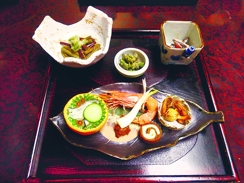 "It's a fish that's been left to soak in a bottle of rice wine," Otake explains and encourages my husband to take the plunge. Years of living on Okinawa with habu-sake (a potent alcoholic concoction with a dead viper inside) have made us no strangers to odd-looking liquor, but the taste is ... well, exactly as one might expect. I quickly wipe away any traces with a serving of sweet potato creme brulee for dessert, leaving my poor husband to down the questionable drink alone.