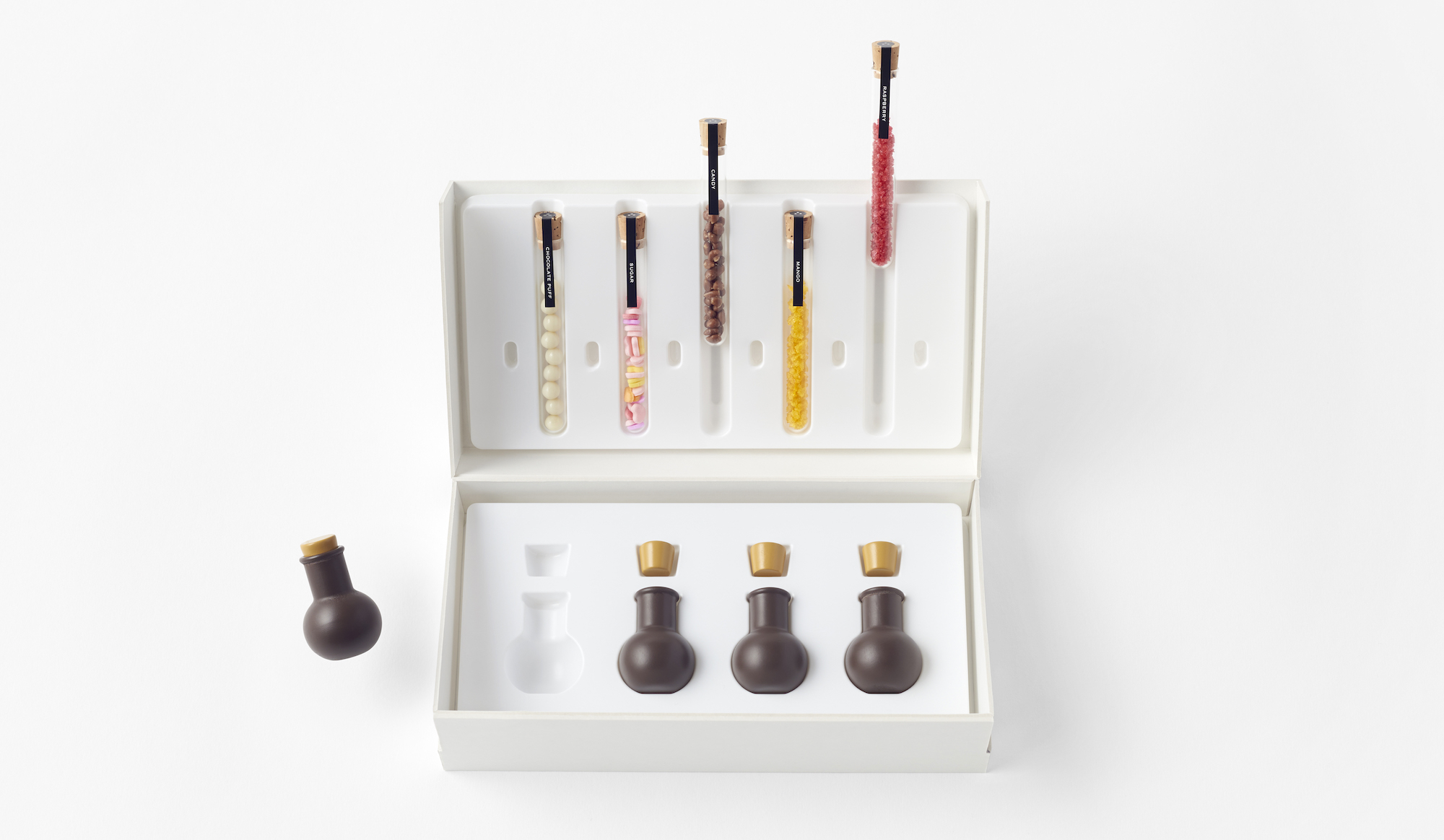 Though Nendo is better known for the design of its interior goods, it is getting quite the reputation for its yearly humorous chocolate innovations, having created chocolate pencils, boxes of edible paints and last year's stylistic series of bonbons designed to represent onomatopoeic words.