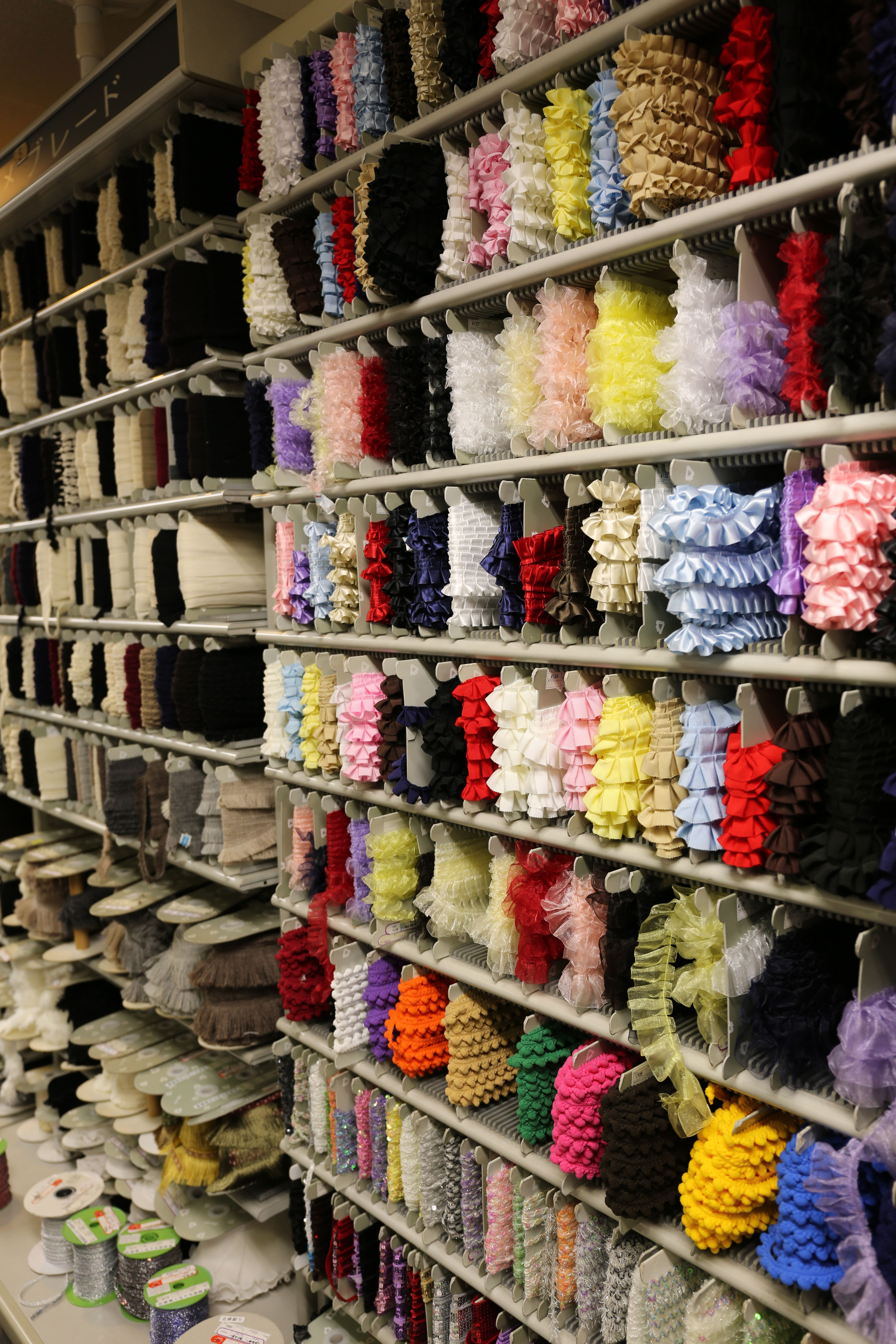 As customers fill Tsunoda, I thank the staff and once again cross the street. I want to check out Trimco. As one might expect, it's a trim business. Mai Mamada, 31, cheerfully informs me that the 1933 company sells more than 1,125 different varieties of ornamentation, including feathers, sequins, rayon braids, mink balls, tassels, lace, etc. "It's just so fun to go around with customers to choose the perfect trim," Mamada says, adding that though Trimco supplies trim for many of Japan's major stage production and concerts, individual purchasers are welcome, too.