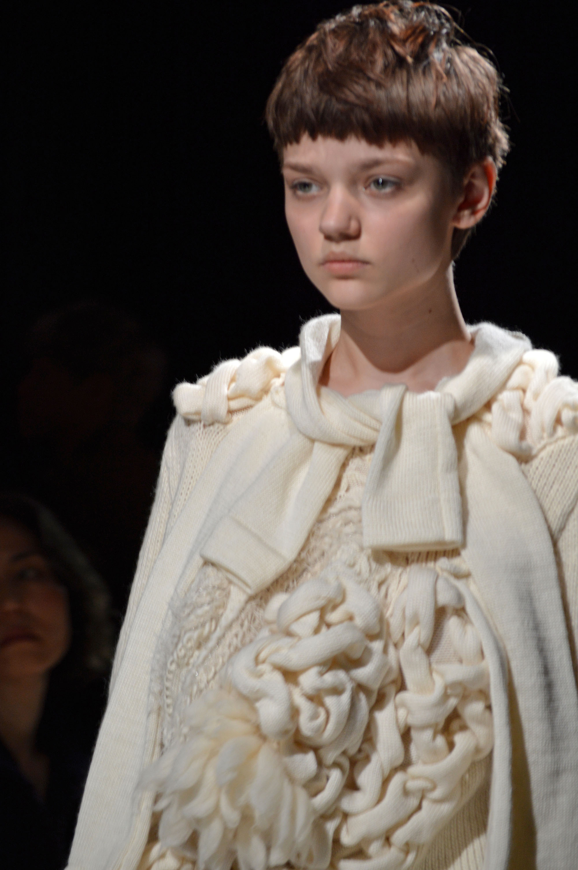 Last but definitely not least, underground label Neb aaran do (pronounced "Neverland") centered its entire design ethos this season on Japanese school sailor suit uniforms. Incorporating sailor hats, printed tights and an abundance of bows, the runway styling leaned heavily toward a "Lolita fashion" subculture. Looking a little more closely, however, it's easy to imagine an array of navy or military green coats on Tokyo women of all ages this coming fall.