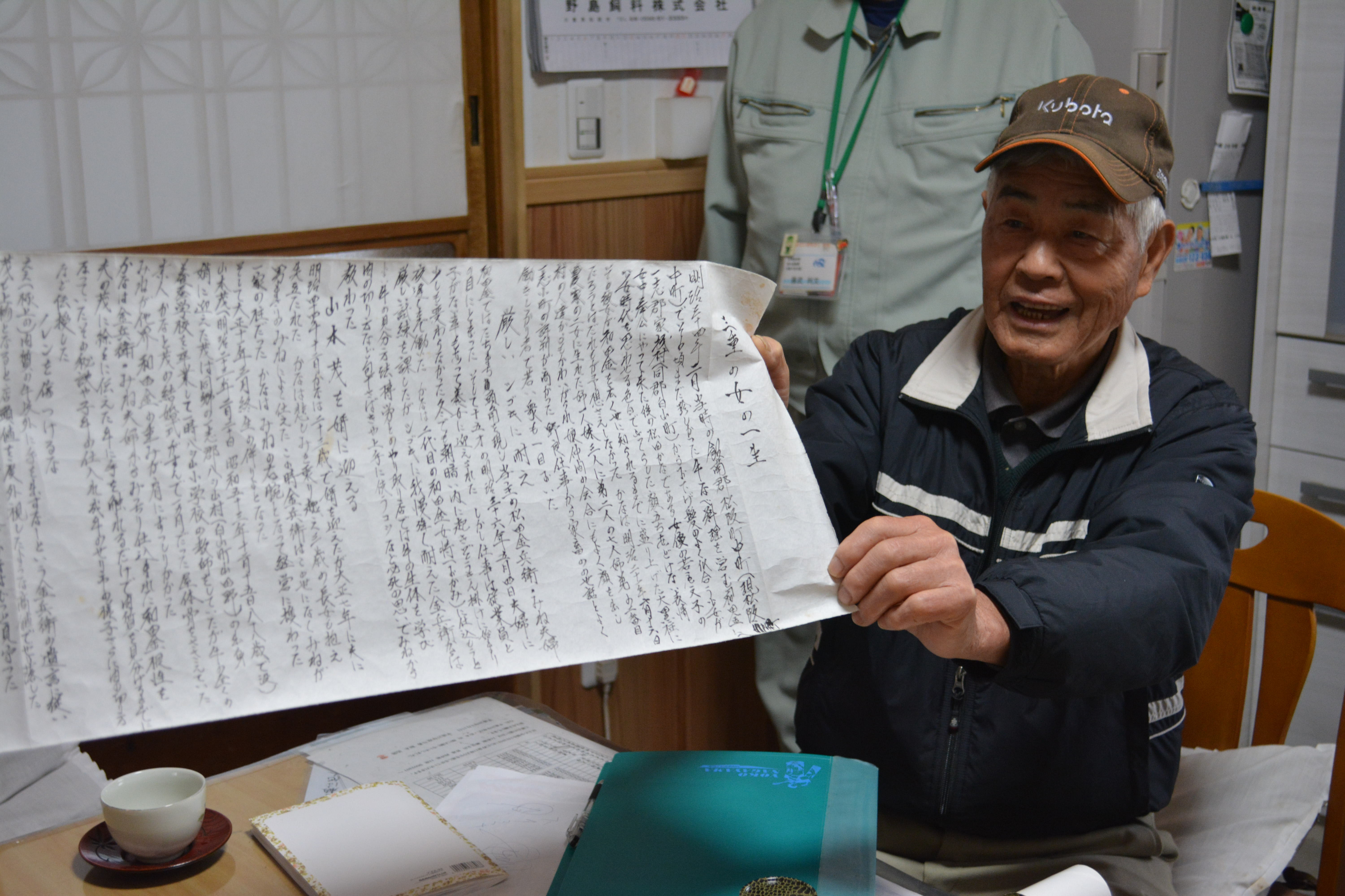 Eighty-seven-year-old Mikichi Kubo's farm is located about halfway up the valley. The quickest way to Kubo's front door is through a barn and out the back to where his house stands.