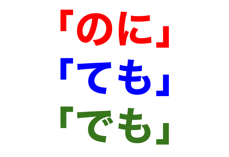 Today we introduce proper usage of のに and ても/でも, which link two contrary clauses. Xのに、Y expresses that unexpected result Y happens after fact X. It is used when the speaker is surprised, critical, regretful or dissatisfied about a result. When the speaker does not have these feelings, Xけど/が、Y is appropriate, as in ネットで調(しら)べてみたけど/が、よくわからなかった (I looked it up on the net but didn't quite get it.) X is usually a present fact or something that has already happened, using a verb or i-adjective in plain form. When X is a na-adjective or a noun in non-past affirmative form, なのに is used. Examples: 彼(かれ)は元気(げんき)なのに、働(はたら)こうとしない (He won't work even though he's healthy). Intentional expressions such as requests (verb in te-form +ください) or wants (verb in pre-masu-form + たいです) cannot be Y.